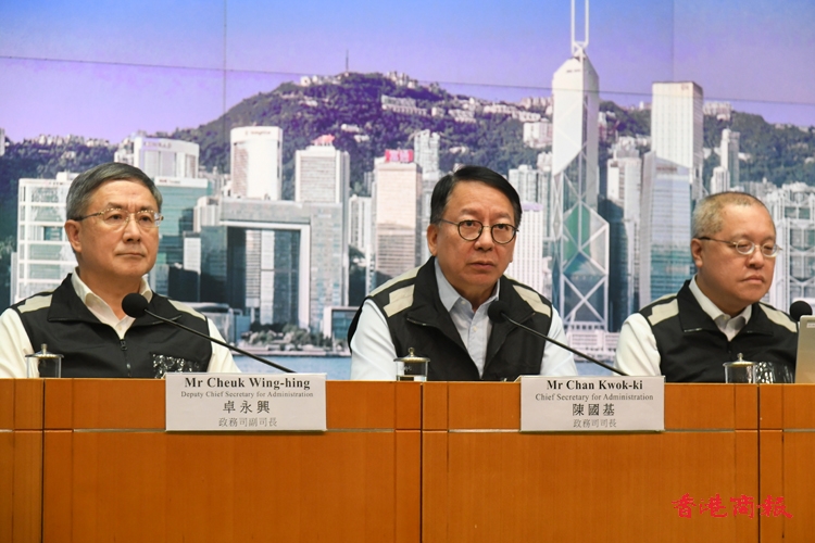 香港天文臺臺長陳栢緯(右一),交代政府應對颱風的工作。(記者 蔡啟文攝)