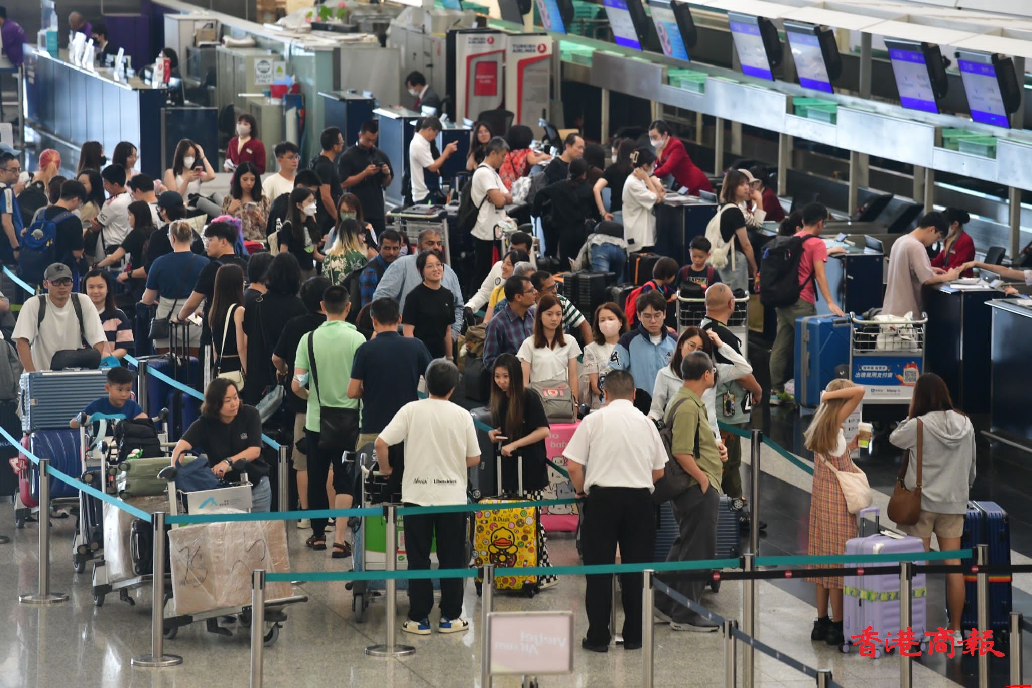 颱風「蘇拉」遠離香港,機管局今日(2日)共處理約480班航班升降。記者今日下午到現(xiàn)場了解,離港大堂秩序良好,部分航空公司櫃位大排長龍,有內(nèi)地來港轉(zhuǎn)飛外國的旅客稱因颱風被迫在香港逗留兩天,但表示理解,安全至上;也有從外地旅遊回港的港人稱可以玩多一天非常開心,因為住多一晚的酒店費有保險公司賠償。