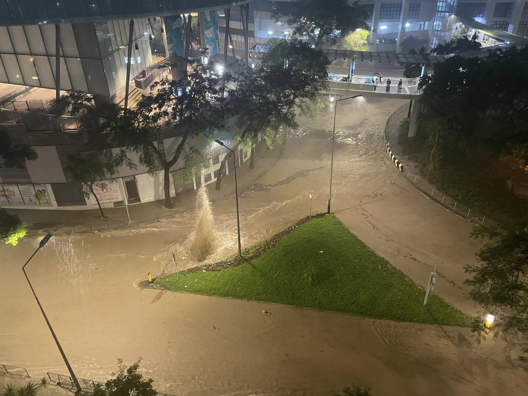天文臺(tái)今晚(7日)分別於9時(shí)25分發(fā)出黃色暴雨警告信號(hào)、9時(shí)50分改發(fā)紅色暴雨警告信號(hào)及在11時(shí)05分改發(fā)黑色暴雨警告信號(hào),港九新界多區(qū)出現(xiàn)嚴(yán)重水浸情況,其中柴灣成為重災(zāi)區(qū)。