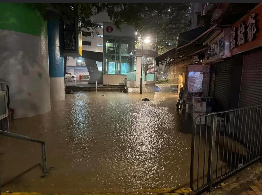 港島方面,柴灣、筲箕灣附近一帶附嚴(yán)重水浸,電車亦無(wú)法行駛,有巴士行駛時(shí)突然有雨水湧入車箱。柴灣地鐵站及環(huán)翠商場(chǎng)均被大量雨水淹浸,也有停車場(chǎng)變?yōu)闈蓢?guó)。港鐵人員將柴灣站B及E出口暫時(shí)關(guān)閉。九龍方面,旺角彌敦道及亞皆老街交界附近一帶有輕微水浸。