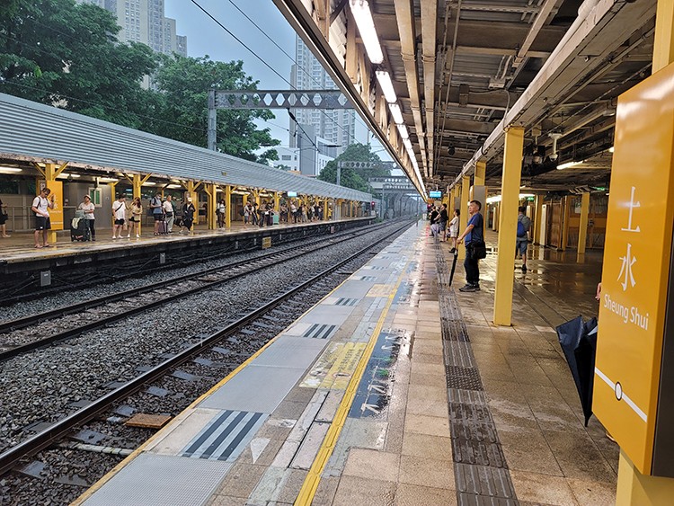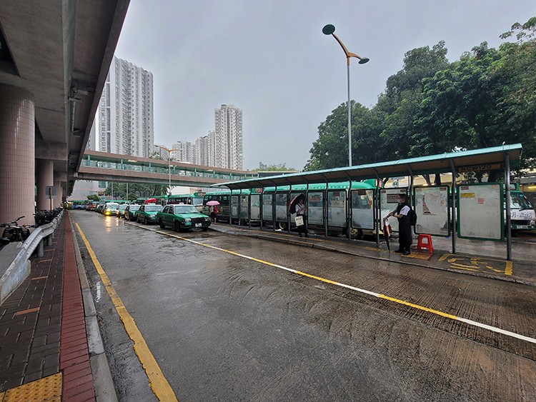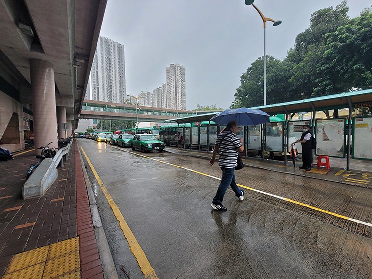 黑色暴雨下,港鐵維持有限度服務(wù),新界北區(qū)在今日(8日)早上9時許,雨勢仍持續(xù),部分仍需上班市民到港鐵上水站候車,昨晚(7日)封閉的 E 出口已重開。此外,九巴來往上水至天水圍的276P線,在10時20分重開,其餘在北區(qū)區(qū)內(nèi)路線部分已開始投入服務(wù)。在上水總站交通交匯處,市民在的士站等候,但大部分司機(jī)將的士泊在車站離去。(記者 區(qū)天海攝)