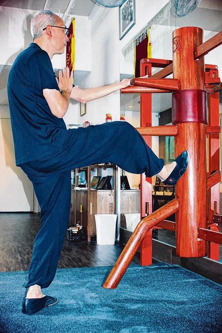 李大明在用木人樁練習(xí)詠春拳。 (網(wǎng)絡(luò)圖片)