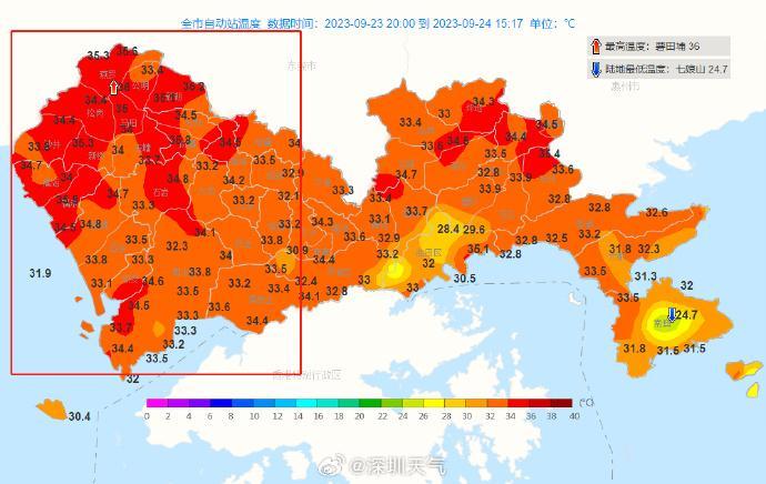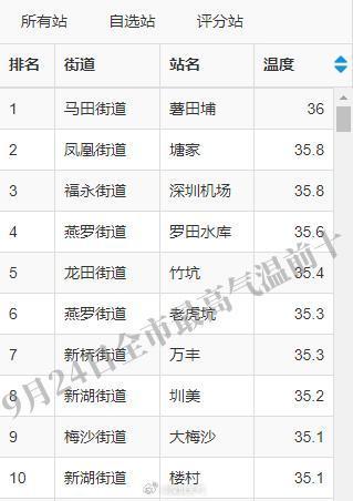 中秋臨近,深圳的夏天還在「超長待機(jī)」,昨天(9月24日),@深圳天氣 發(fā)布的當(dāng)天全市氣溫TOP10顯示,全市氣溫前十均超過35℃,「冠軍」由光明區(qū)馬田街道獲得(薯田埔站36℃)。