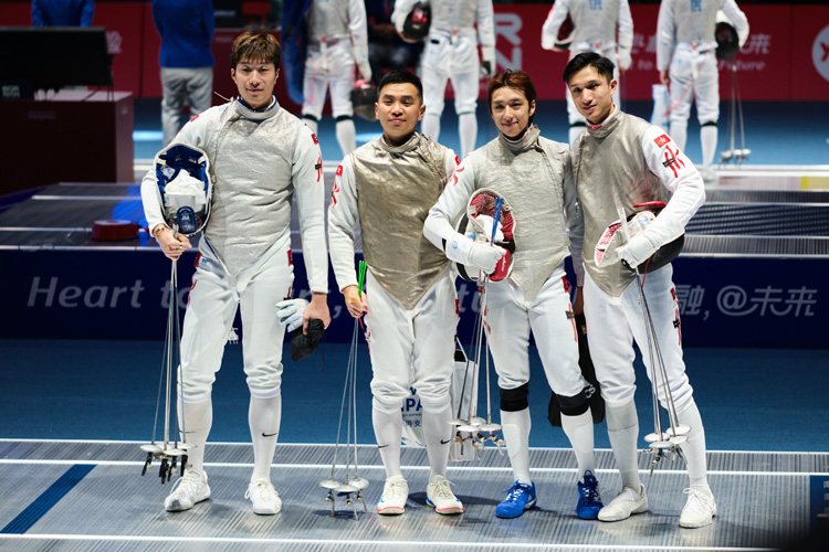 男花團(tuán)體4強(qiáng)決戰(zhàn)韓國,正是上屆亞運(yùn)金牌戲碼,港隊(duì)派出張家朗、蔡俊彥、崔浩然及楊子加上陣,最終以37比45見負(fù),未能晉身決賽,只得一面銅牌。
