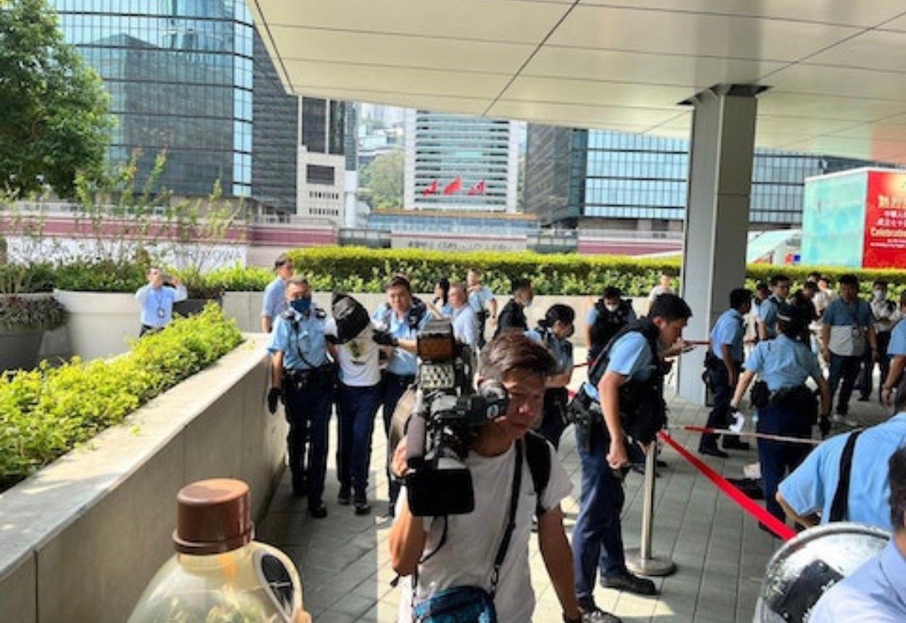 現(xiàn)場消息指,上址一個(gè)保安崗位有3名保安當(dāng)值,該名男子突然走近,取出生果刀襲擊其中1名保安員未果,繼而向第2名保安員揮刀,割傷其左前臂。有途人及保安員見狀立即制服兇徒,並報(bào)警求助,在附近的警員接報(bào)趕至現(xiàn)場,拘捕該名男子。