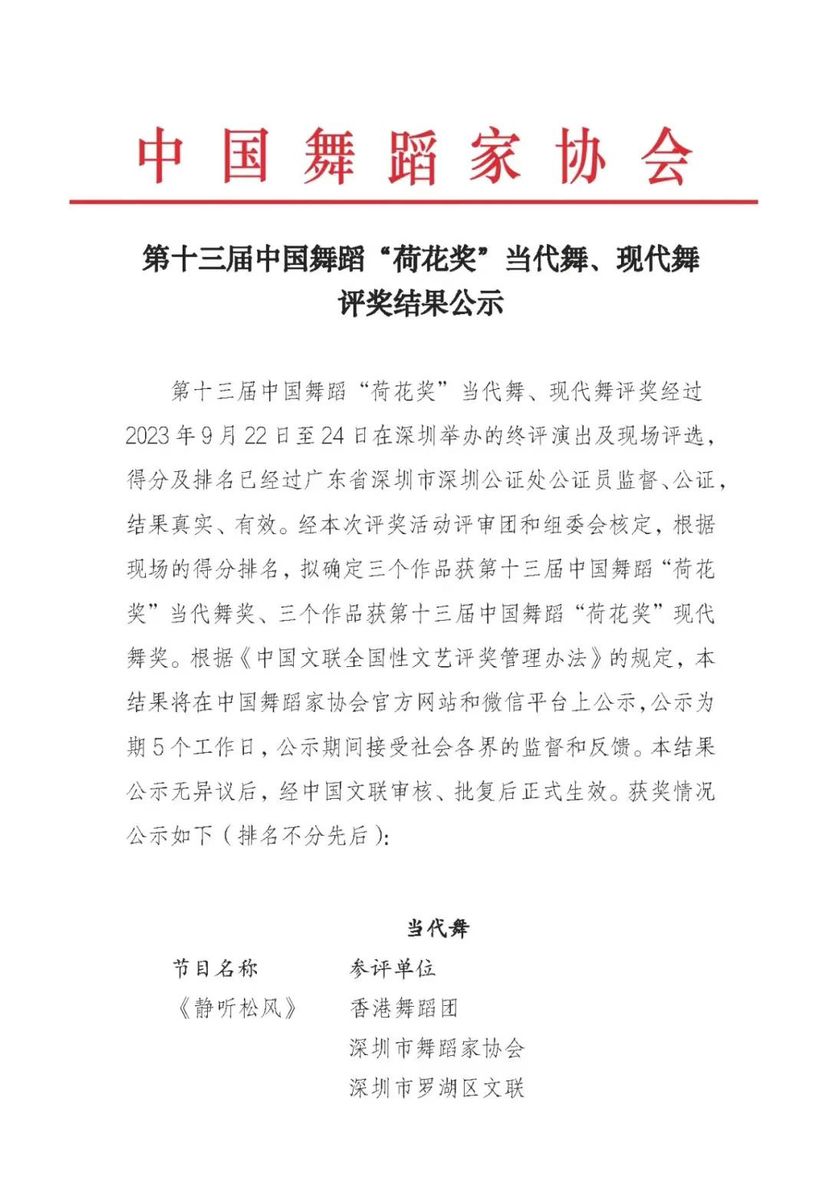 第十三屆「荷花獎(jiǎng)」當(dāng)代舞、現(xiàn)代舞評(píng)獎(jiǎng)結(jié)果公示!深圳兩部作品入選