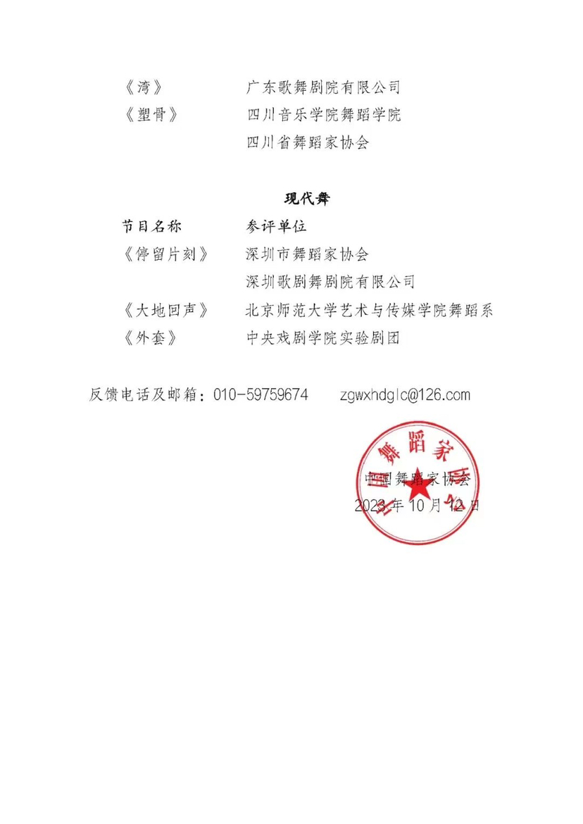 根據(jù)《中國(guó)文聯(lián)全國(guó)性文藝評(píng)獎(jiǎng)管理辦法》的規(guī)定,獲獎(jiǎng)結(jié)果在中國(guó)舞蹈家協(xié)會(huì)官方網(wǎng)站和微信平臺(tái)上進(jìn)行為期5個(gè)工作日的公示,其間接受社會(huì)各界的監(jiān)督和反饋,公示無(wú)異議後,經(jīng)中國(guó)文聯(lián)審核、批覆後正式生效。