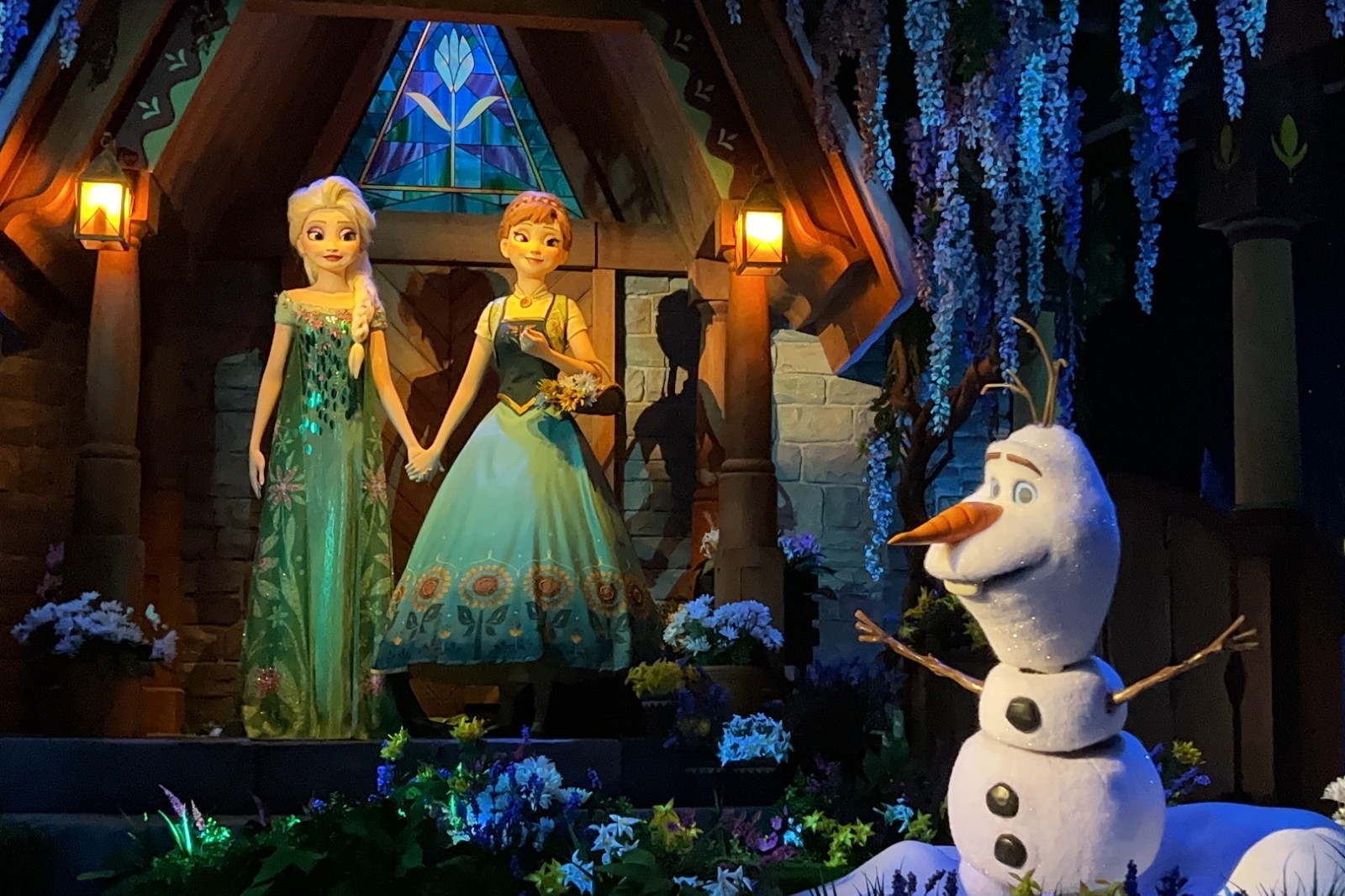 友誼噴泉位於激光糖果屋門外,是紀(jì)念電影中安娜和愛(ài)莎姐妹情深的小鎮(zhèn)地標(biāo)。