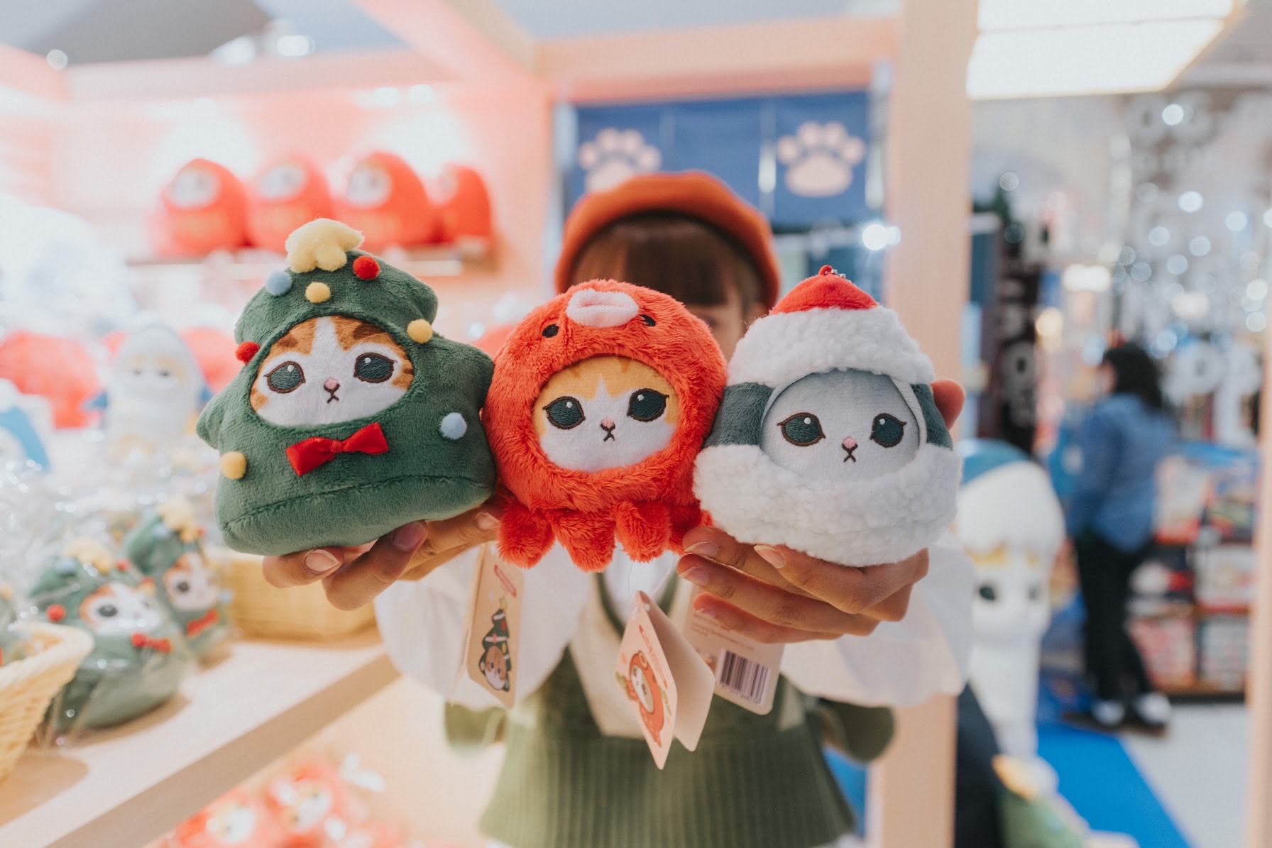 日式小屋的門(mén)口掛著印了貓掌的和風(fēng)門(mén)簾,而多隻鯊魚(yú)造型貓咪在日式趟門(mén)上擺著不同的姿勢(shì)作點(diǎn)綴,小屋使用原木色為主色,門(mén)前並設(shè)計(jì)了一個(gè)茶室打卡位置,擺放著蒲團(tuán)坐墊,屋後有兩隻巨大鯊魚(yú)造型貓咪在木窗擺著不同姿勢(shì)「賣(mài)萌」,讓粉絲拍照留念。店內(nèi)設(shè)有各款限定商品,除了有「鯊魚(yú)貓」外,mofusand亦化身不同造型產(chǎn)品,包括招財(cái)貓水晶球、富士山夜燈、八爪魚(yú)毛絨吊飾、達(dá)摩造型盲盒等。爲(wèi)了迎接聖誕,店舖首度推出mofusand聖誕cosplay商品,包括聖誕咕??、聖誕樹(shù)毛絨吊飾等精品。店舖亦搜羅多款卡通角色精品例如LuLu豬、角落生物 、迪士尼系列、Sanrio系列等商品,爲(wèi)聖誕禮物提供眾多選擇。(記者、部分圖片:Karena)