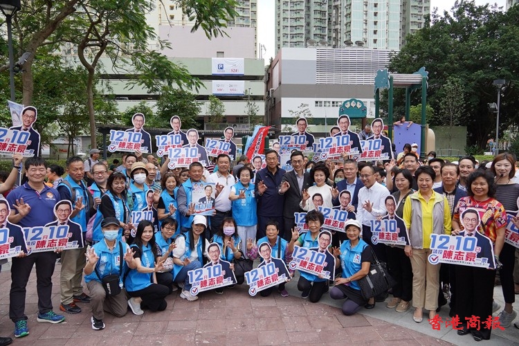 15個(gè)愛國(guó)同鄉(xiāng)社團(tuán)支持參選人陳志豪。記者 馮俊文攝