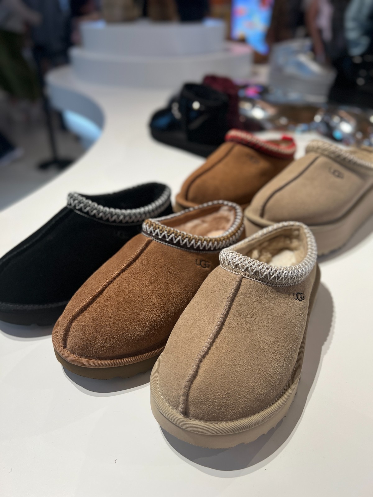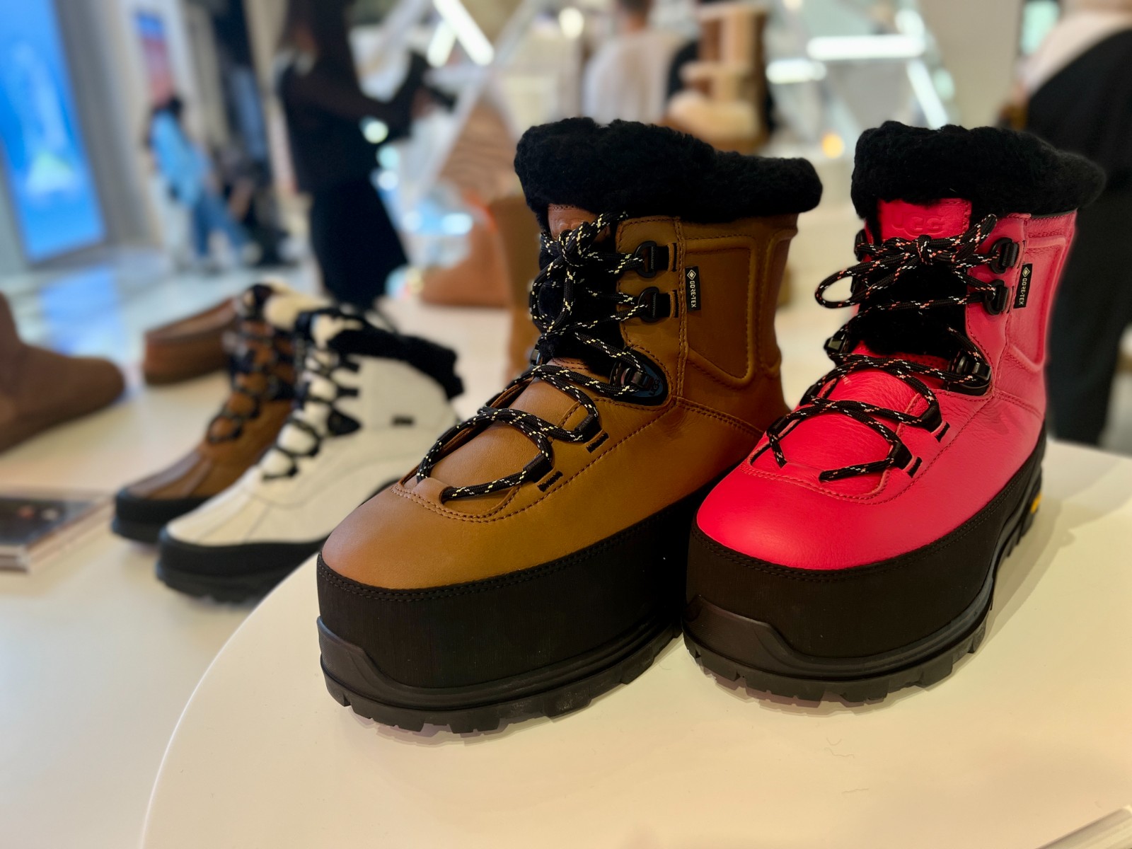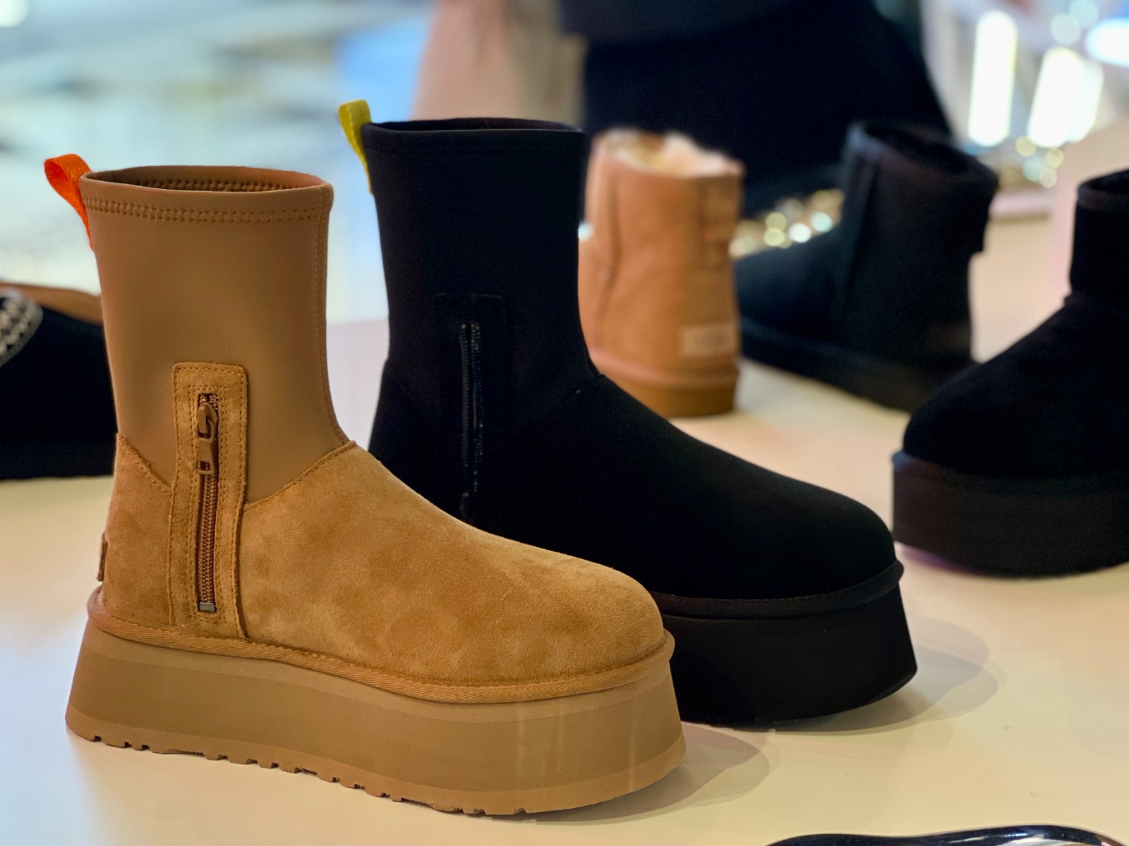 店內(nèi)亦率先呈現(xiàn)最新秋冬鞋品,設計延續(xù)了品牌經(jīng)典毛靴風格,以超厚底毛靴作為主軸,迎合時下流行的Y2K風格。如全新高筒厚底CLASSIC DIPPER毛靴,搭配柔軟的麂皮鞋面、舒適的再生羊毛混紡內(nèi)襯,並首度採用緊貼小腿的橡膠軟管設計,增強顯瘦效果,凸顯高冷型格風,就連饒舌歌手Cardi B、模特兒Natalia Bryant也穿過;另一款隨穿隨走的毛拖Tazzlita,是木村光希、韓國女團(G)I-DLE隊長田小娟同款,毛茸茸的再生羊毛延伸到鞋領(lǐng),保暖之餘帶出慵懶隨性感,適合冬日休閒打扮;低筒厚底Classic Ultra Mini Platform毛靴顯腿長,由經(jīng)典鞋款演變,大膽搭配2吋加厚鞋底,穿上具氣勢,加上輕身、耐用的鞋底,日常出行游刃有餘。