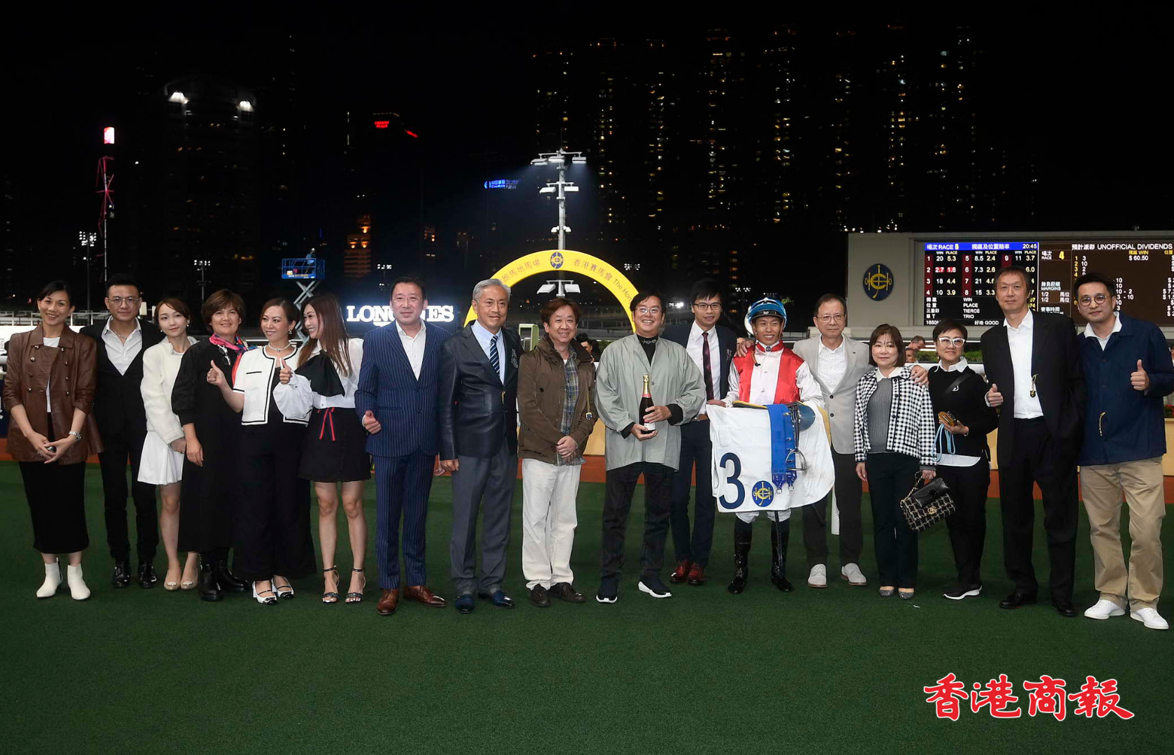 周三晚(22日)跑馬地馬場(chǎng)舉行8場(chǎng)賽事,四場(chǎng)四班1000米,黎昭昇訓(xùn)練的「萬眾開心」在何澤堯胯下,直路大外檔衝刺後上取勝,繼今年5月3日勝出四班谷草1200米後,再次勇奪勝仗。此駒為萬眾一心團(tuán)體馬,譚詠麟(譚校長(zhǎng))正是馬主之一,「萬眾開心」衝線一刻,譚校長(zhǎng)開心大叫,並且高舉V字手勢(shì),相當(dāng)興奮。