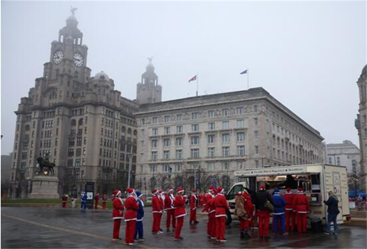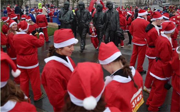 當(dāng)天一早,利物浦就湧入數(shù)千名男女老少,打扮成聖誕老公公的模樣,還有不少人戴上白花花的假鬍鬚,參加這項(xiàng)長(zhǎng)達(dá)五公里的「聖誕歡樂(lè)跑」活動(dòng)。