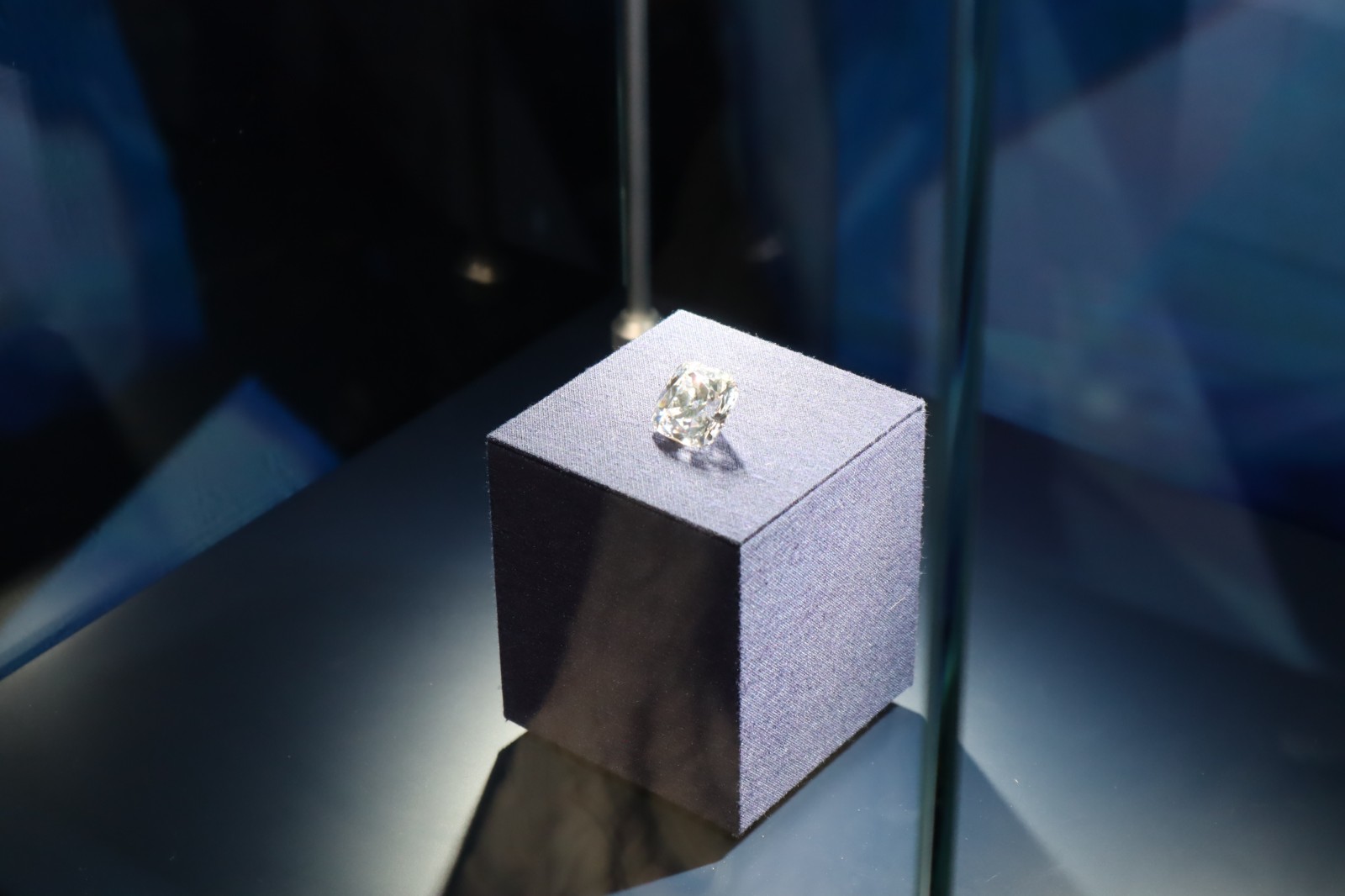 預(yù)展期間展出一顆 37.61 卡的內(nèi)在無暇、枕形(Cushion Cut)天然美鑽。