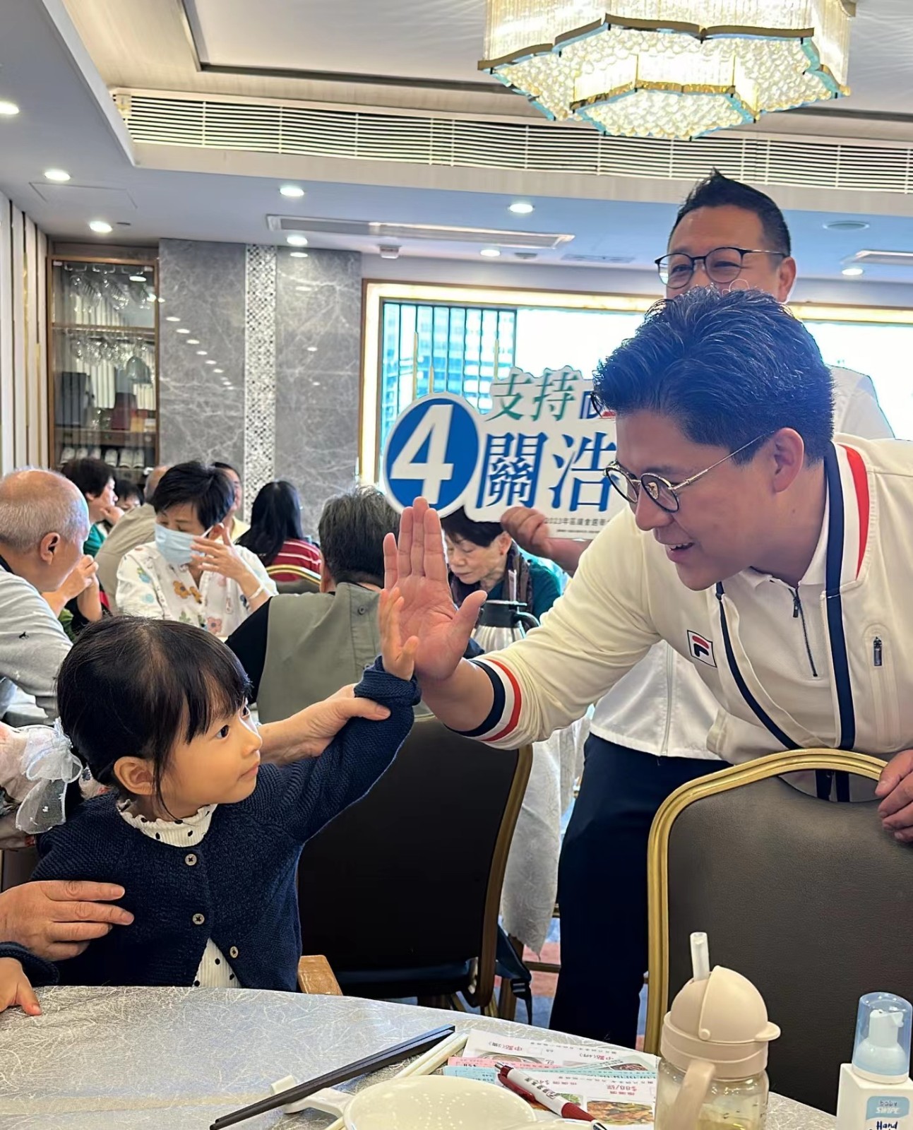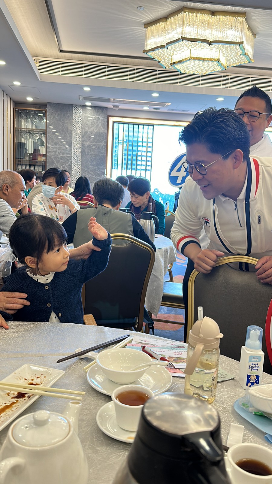 霍啟剛今早投票後就開始四出呼籲市民投票,更到附近的酒樓呼籲大家出來(lái)投票,現(xiàn)場(chǎng)大受歡迎,不少人都找他拍照留念,還誇他靚仔又能幹,為香港出力幹實(shí)事。