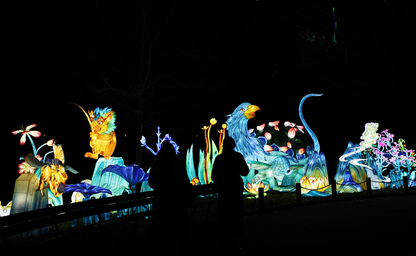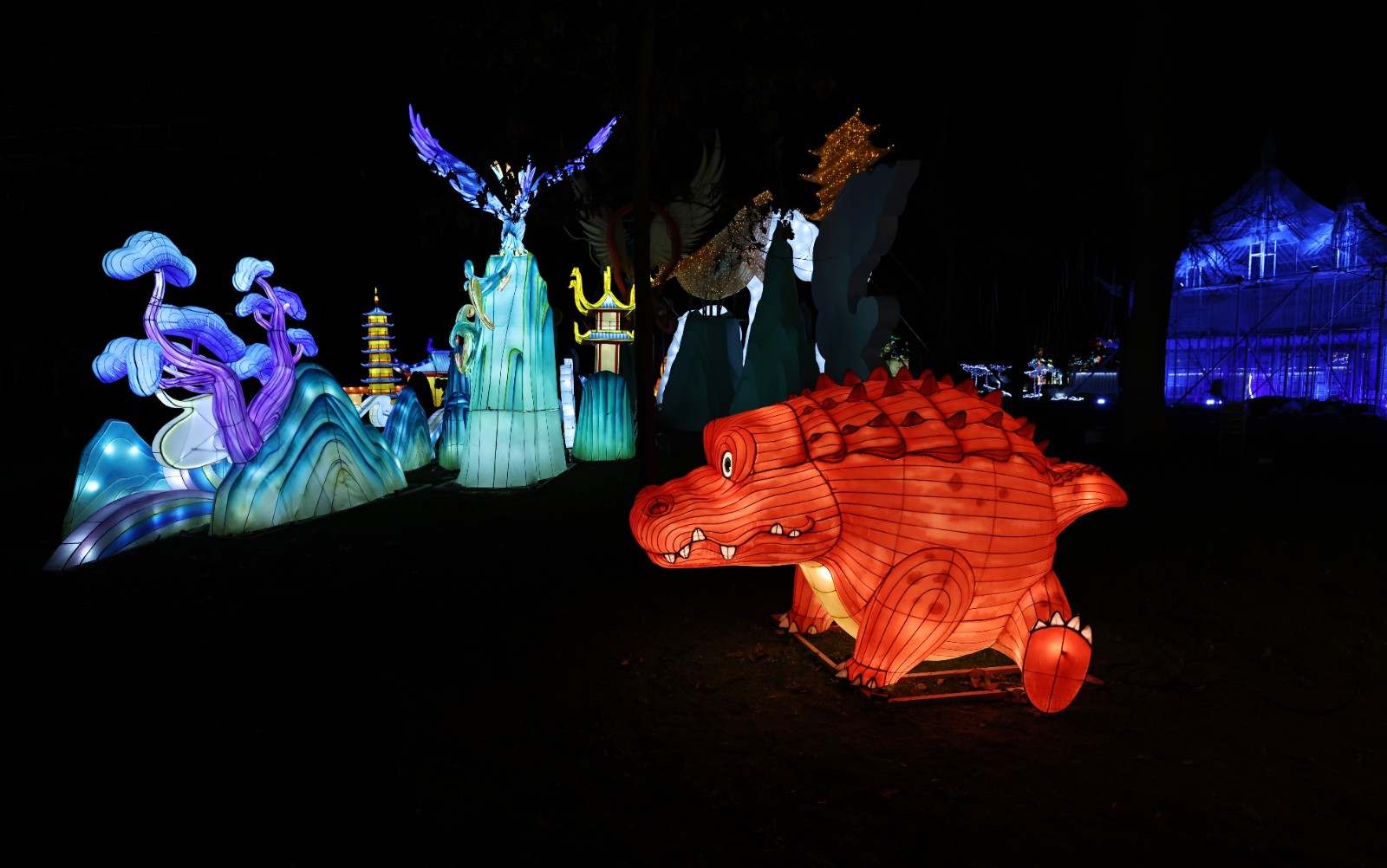 據組織方介紹,本次燈會將中國的燈彩製造技藝與巴黎風情園的道路園景有序結合,整場燈會以點連線、穿線成面,共設東情西韻、山海有靈、煙火市集三大展區(qū)。2024年適逢龍年,龍的元素出現在景區(qū)各處。穿行在園區(qū),法國觀眾不僅能欣賞到傳統(tǒng)的十二生肖、亭臺樓閣,更能沉浸在《山海經》各類瑞獸奇珍創(chuàng)造的奇幻世界當中。