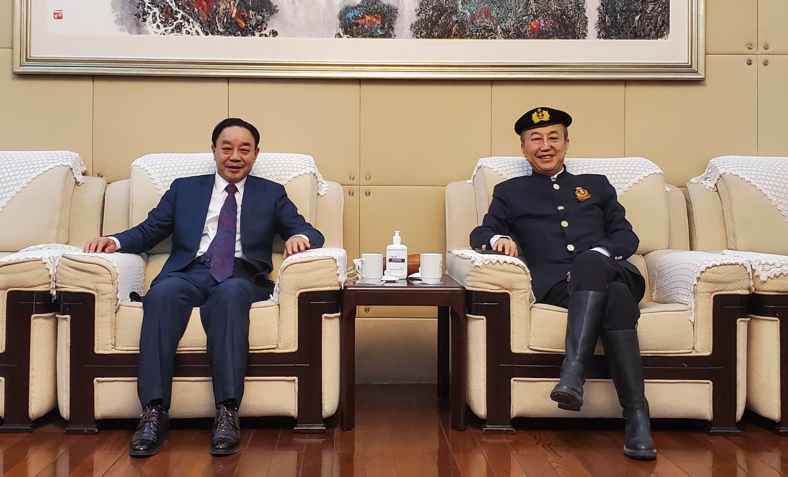 施乃康(右)與亞太經(jīng)濟(jì)與文化交流協(xié)會執(zhí)行會長、「粵港澳大灣區(qū)國防教育基地項目建設(shè)領(lǐng)導(dǎo)小組」副組長張玉堂合影。