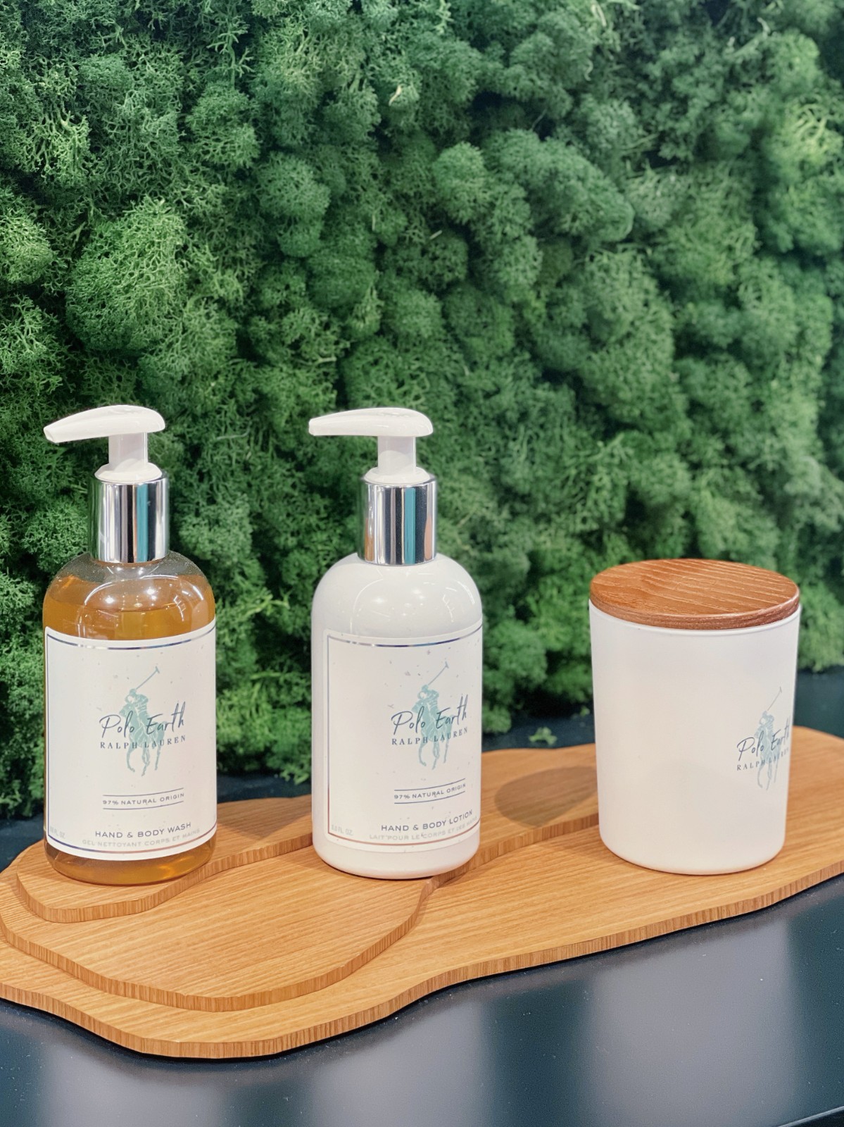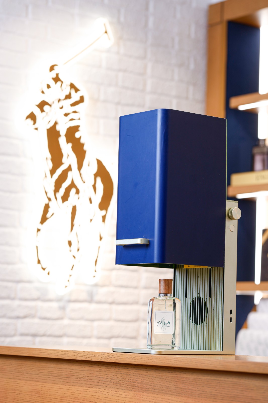 店舖裝潢以馬鞍皮革與拋光木材的搭配,在皇家海軍藍(lán)的色調(diào)中,顯得和諧且富有層次;富現(xiàn)代感的金色和銅色擺設(shè)作點(diǎn)綴,整體氛圍優(yōu)雅。店內(nèi)展示了多款香水系列、沐浴和身體護(hù)理產(chǎn)品,包括經(jīng)典的Polo、Polo Blue、Polo Black、Polo Red和Ralph Lauren Romance,還有時(shí)尚的Ralph’s Club和最新推出、環(huán)保的Polo Earth。