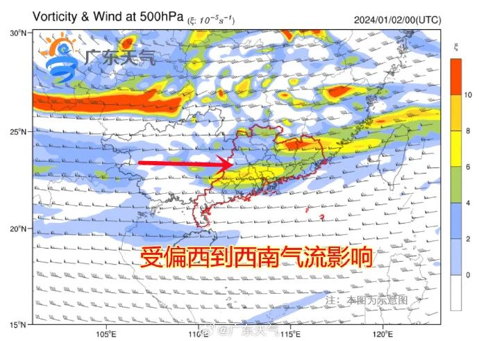 據(jù)@廣東天氣消息,未來(lái)5天,副高位於南海中部偏北,廣東省主要受偏西到西南氣流影響,間中有短波槽影響,西北部有弱降水,其餘大部多雲(yún)為主;2-3日早晨,西江流域和粵西的部分市縣有(輕)霧,粵北部分市縣受弱降水影響,以上地區(qū)能見(jiàn)度偏低。