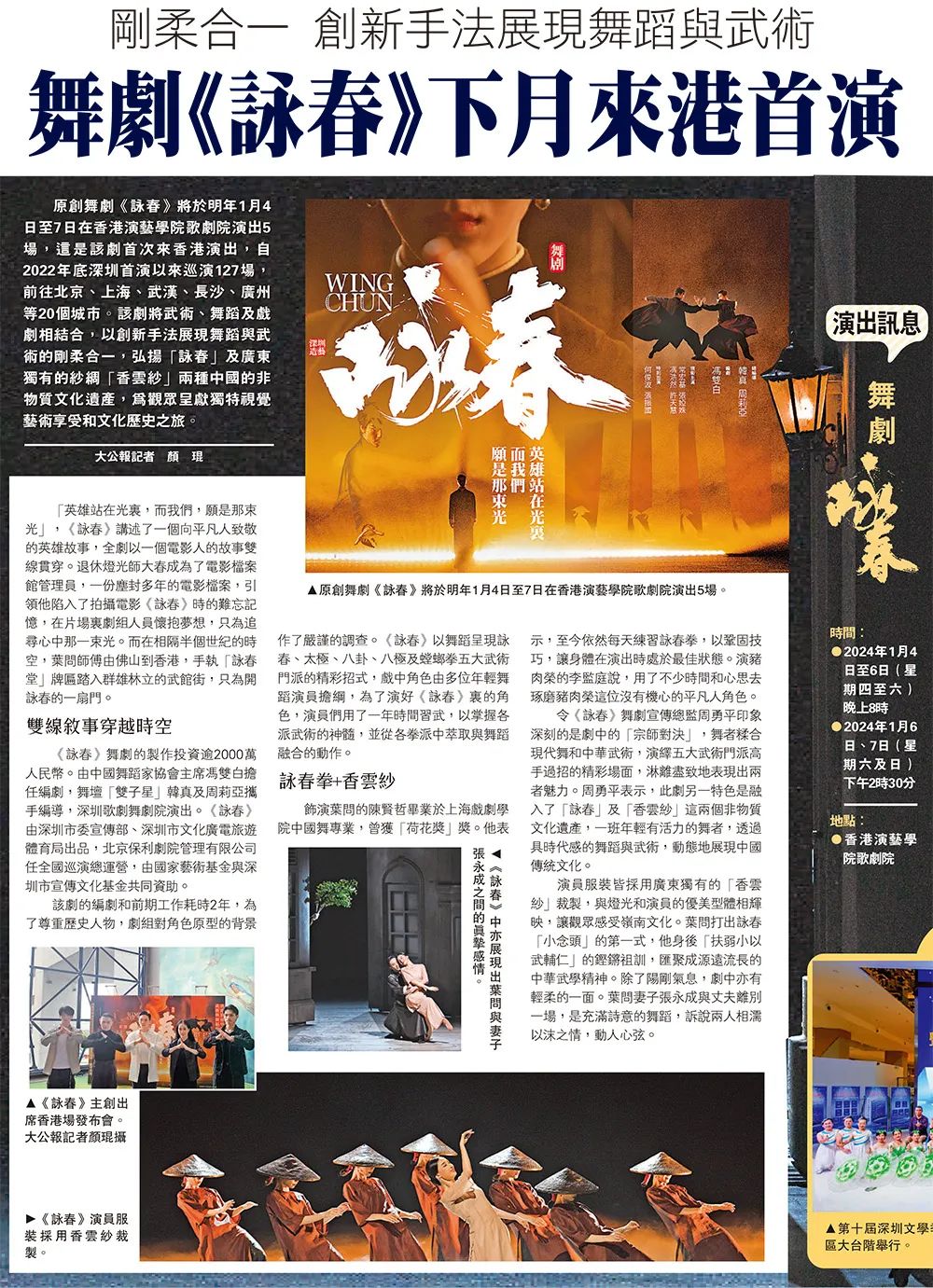 《香港商報》推出系列專題報道,採訪了臺前幕後眾多舞者及工作人員,深入挖掘了詠春拳背後的文化傳承。