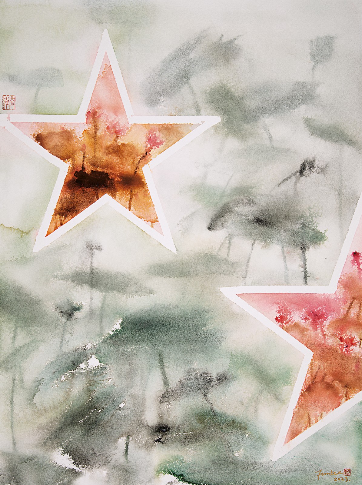 蕭芬琪作品《物轉(zhuǎn)星移幾度秋》,水彩畫,76.5×56.5cm,2023年。