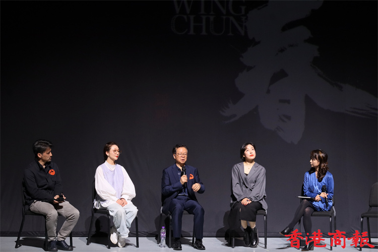 1月7日是舞劇《詠春》此次在港演出的最後一天,《詠春》全體演員與編導、總監(jiān)在演出現(xiàn)場與現(xiàn)場觀眾互動並講述舞劇《詠春》那些令人回味及難忘的臺前幕後的故事。在7日的演出謝幕時,現(xiàn)場掌聲與歡呼聲此起彼伏,《詠春》兩位總編導韓真和周莉亞更是驚喜現(xiàn)身,並向觀眾「比心」。本報記者謝嘉敏女士客串現(xiàn)場主持。