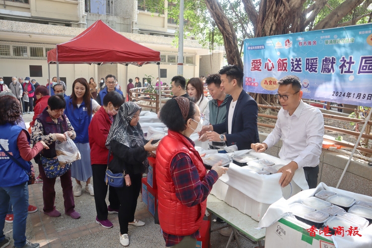 新界西南立法會(huì)議員陳恒鑌向長(zhǎng)者派飯。
