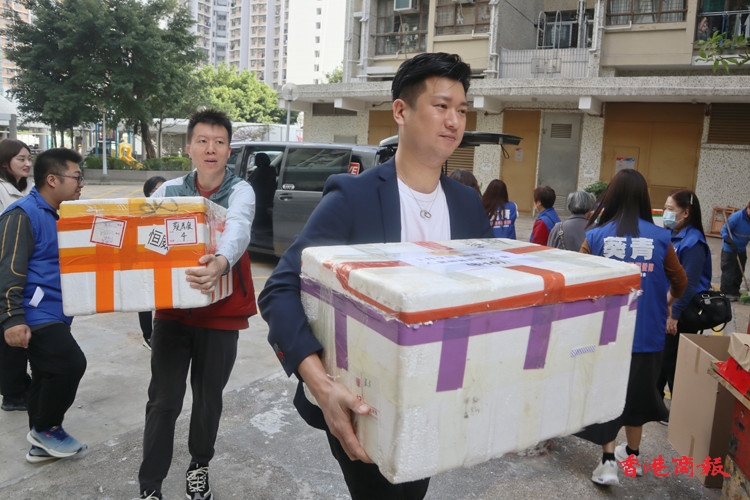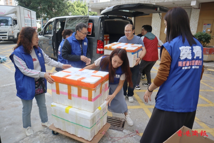 葵青關(guān)愛隊(duì)人員接收飯盒。