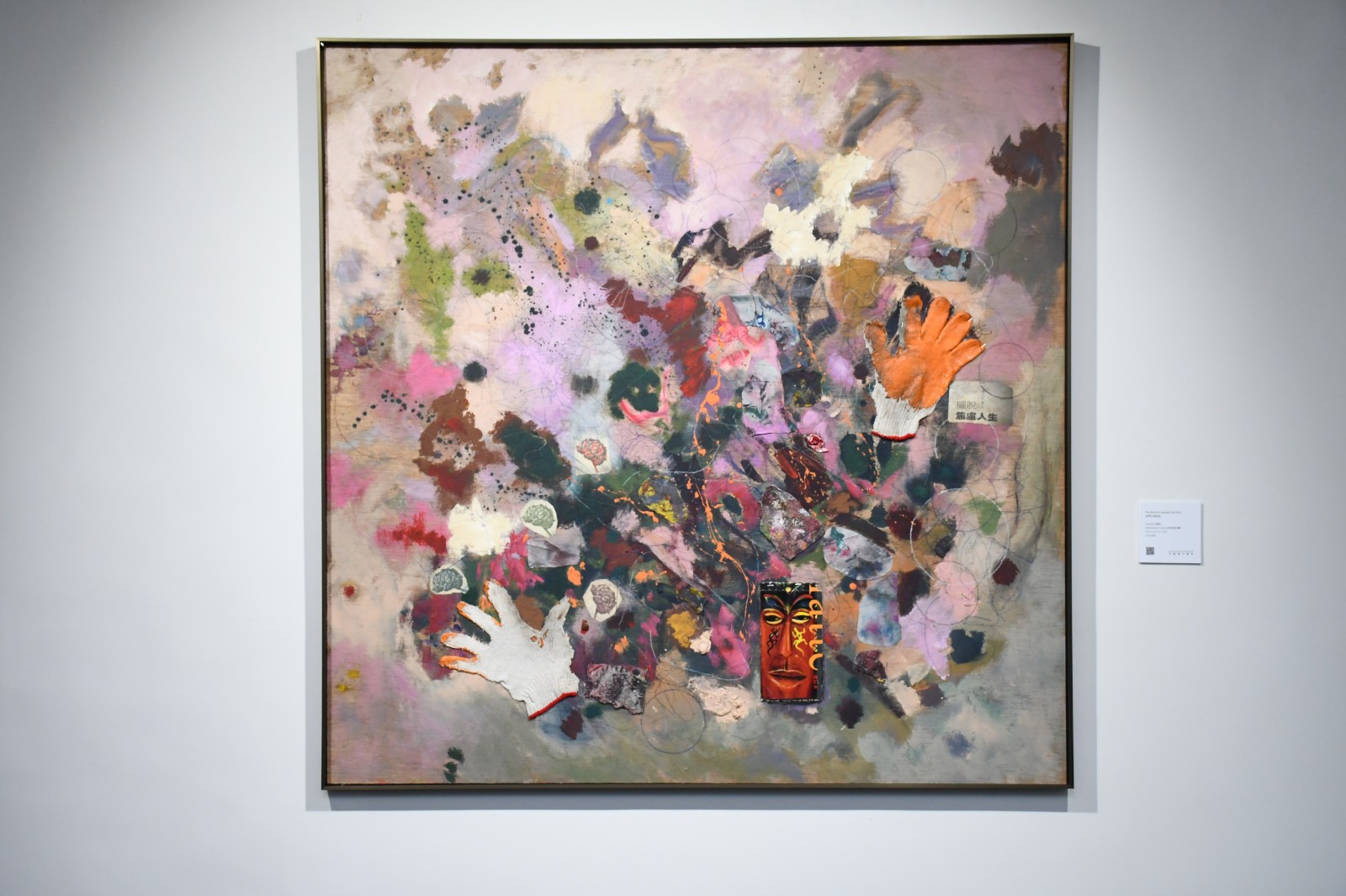 展品採(cǎi)用綜合材料,如舊層板與地毯、擦筆的布與紙、油漆與水泥等,部分作品將一張張舊畫(huà)剪成碎片,再重構(gòu)成新的作品。在解構(gòu)與重構(gòu)中,可窺見(jiàn)該系列的主旨,循環(huán)反覆,生命不息,正如展覽主題「轟」所帶來(lái)的衝擊。