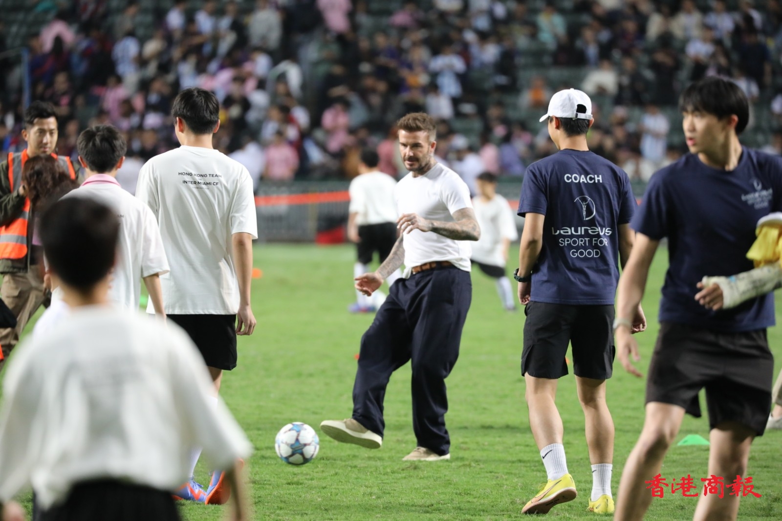 美職聯(lián)球隊(duì)「國際邁阿密CF」今日(3日)下午在香港大球場進(jìn)行公開訓(xùn)練,阿根廷球王美斯(內(nèi)地譯梅西)與隊(duì)友一齊進(jìn)行傳球熱身訓(xùn)練。球隊(duì)班主碧咸(內(nèi)地譯貝克漢姆)也在球場與粉絲們合照。期間,現(xiàn)場不停有粉絲沖到球場上,最後被安保人員帶離。(記者 木子 李承泰 馮瀚文)