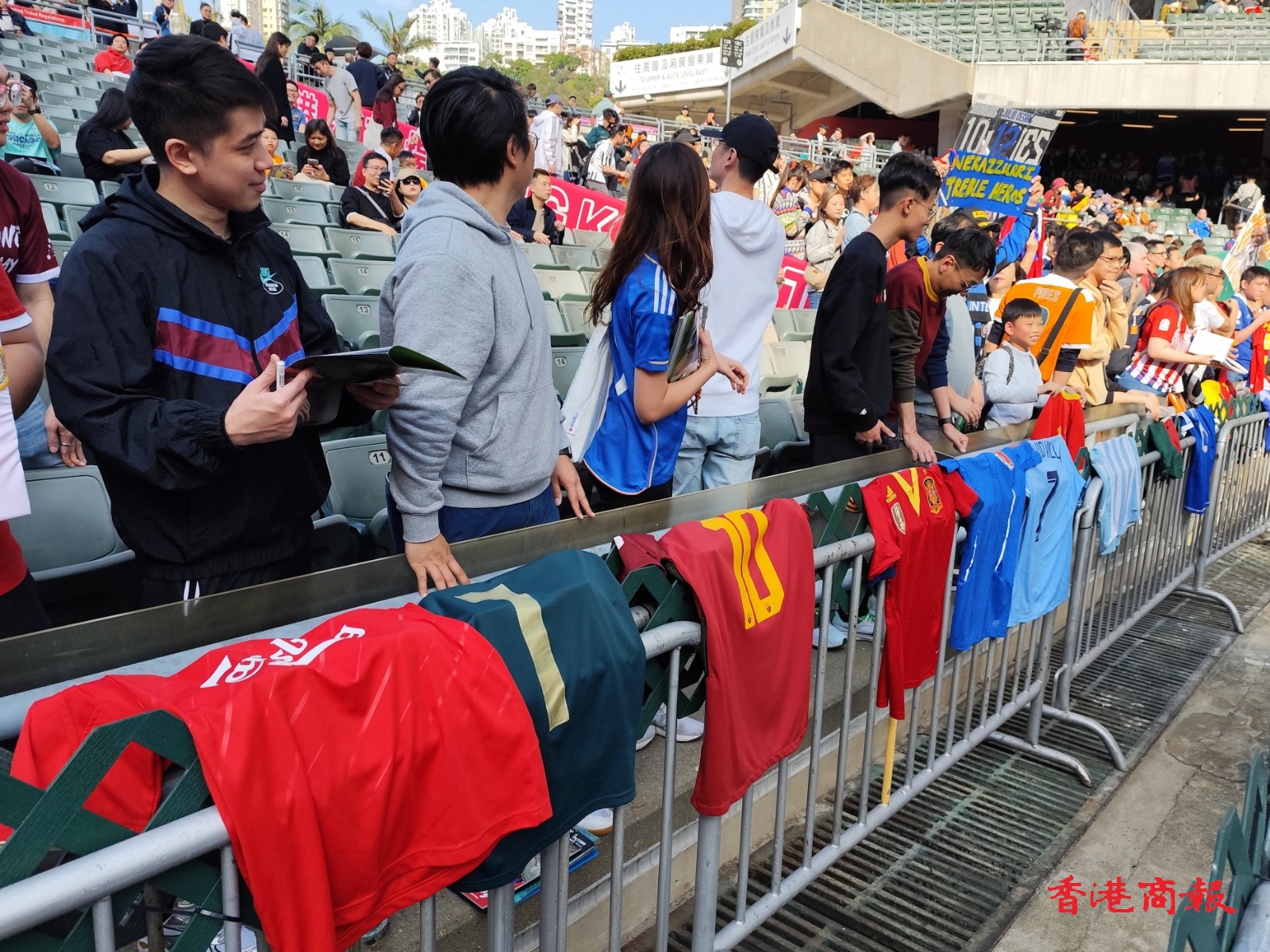 因應全球疫情而停辦4年的賀歲盃今日(年初四)再度於香港大球場上演,大批球迷一早入埸,場內球迷不斷揮動旗幟和球衣為球員打氣。(馮瀚文攝)