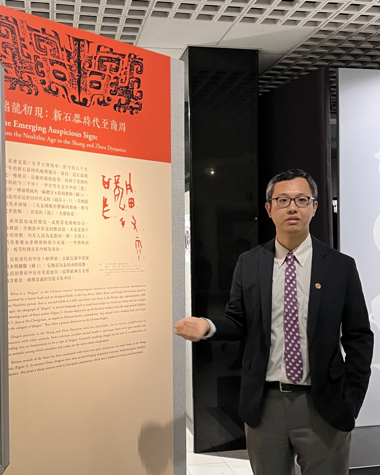 童宇介紹,展覽主要講述龍紋如何從古代演變至近代,介紹龍形象的演化。 (Janice攝)