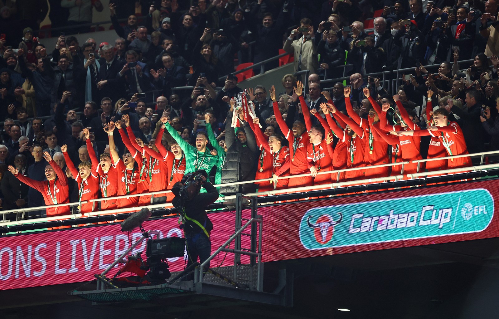 戰(zhàn)至118分鐘,華基爾雲(yún)迪積克接應(yīng)森美卡斯右路開出的角球,銅頭破網(wǎng),最終紅軍憑著這個絕殺入球,以1比0險勝車仔,第10次捧走英聯(lián)盃冠軍的同時,亦為早前宣布於季尾卸任的領(lǐng)隊高普送上告別前的第一份禮物。(文:志誠 圖:路透社)