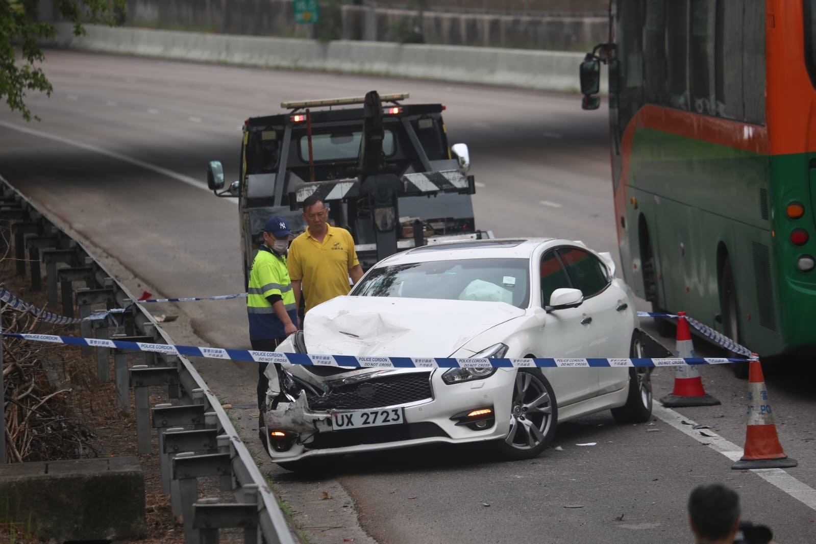 沙田大老山公路發(fā)生奪命車禍,今日(4日)上午10時(shí)許,一輛私家車與一輛的士在往九龍方向近迴旋處相撞,兩車司機(jī)停車後落車視察情況,未料一輛貨車駛至,懷疑收掣不及,兩人被撞受傷倒地,當(dāng)場昏迷不醒,貨車司機(jī)馬上報(bào)警求助。