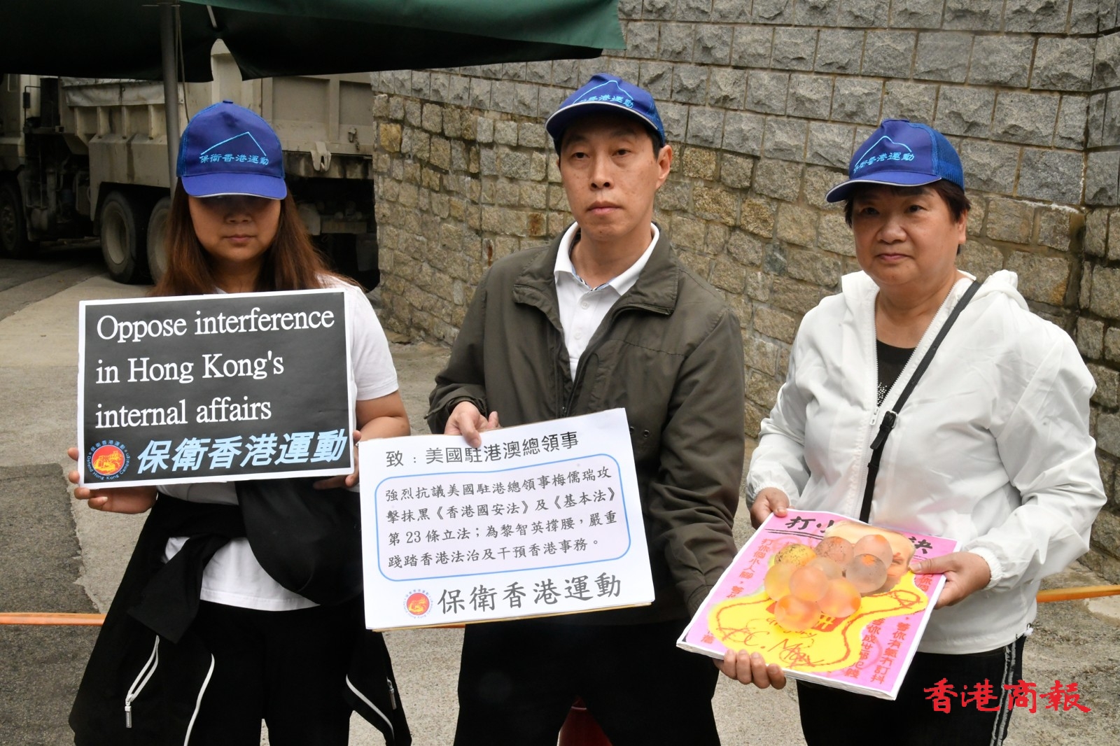 今日(7日)再有多個(gè)團(tuán)體到美國駐港總領(lǐng)事館抗議,強(qiáng)烈譴責(zé)美國駐港總領(lǐng)事梅儒瑞攻擊抹黑香港國安法及基本法第23條立法,為黎智英撐腰,嚴(yán)重踐踏香港法治及干預(yù)香港事務(wù)。