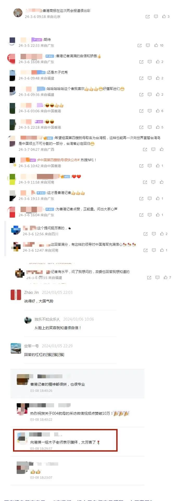除第四艘航母的消息外,本報獨(dú)家採訪海軍政委袁華智的系列視頻《美5航母群雲(yún)集西太 海軍政委袁華智:中國有能力應(yīng)對 會全方位部署》《海軍政委:第4艘航母"名分"未定 會以省為名》及《有人質(zhì)疑殲35模型上艦 海軍政委:相信我們 我們不會虛張聲勢》。