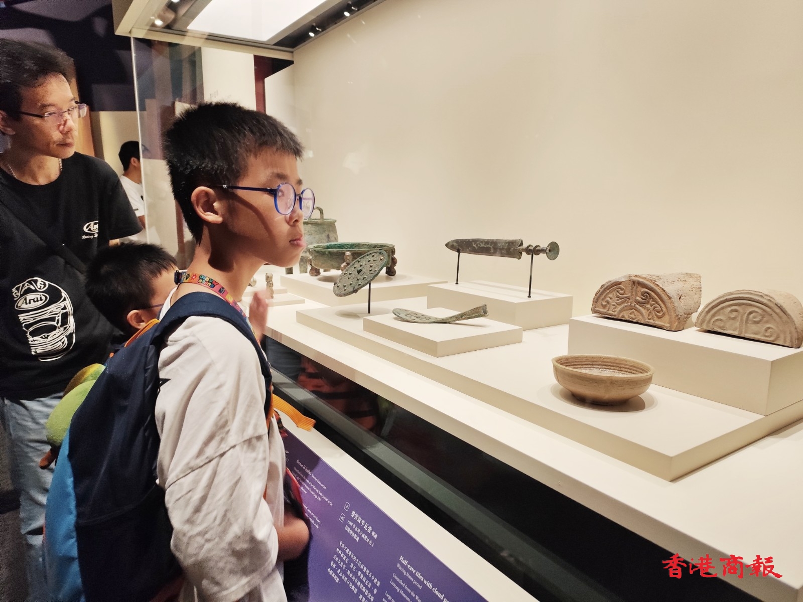 「五一」假期碰上下雨天,不少遊客改變行程遊覽室內(nèi)景點(diǎn)。其中香港歷史博物館最近推出的中國通史系列首個(gè)大型展覽「天地之中-河南夏商周三代文明展」吸引不少遊客參觀。(記者 馮瀚文攝)