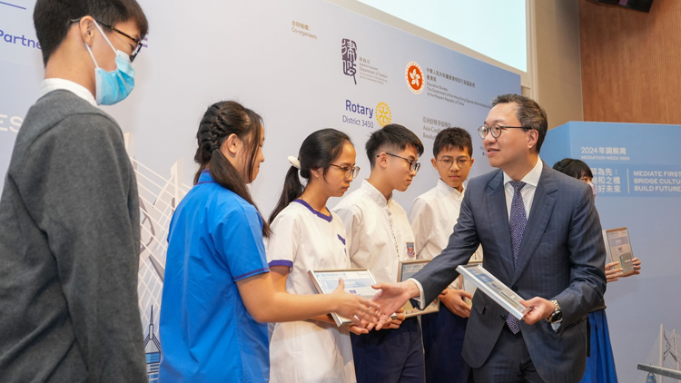 今日活動豐富,除研討會外亦是「2024年調(diào)解徵文比賽」的頒獎典禮。這次比賽共接獲來自58間學(xué)校,合共超過370篇參賽作品,為歷屆比賽之冠,而其中更有來自大灣區(qū)學(xué)校同學(xué)的參賽作品,反映透過比賽可以將調(diào)解文化推廣至香港以外的地區(qū),讓不同背景的同學(xué)都能認(rèn)識到調(diào)解的好。在徵文比賽中,林定國指感受到同學(xué)除了中英文水平甚高、文筆流暢之外,得獎作品反映同學(xué)們對調(diào)解有充分的認(rèn)識和獨(dú)特的見解,他非常推薦各位可抽空閱讀整本得獎作品集,從中必有所得。