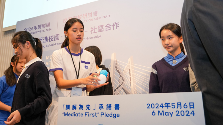 此外,今日特意為同學(xué)們加設(shè)「調(diào)解為先」承諾書簽署儀式,見證同學(xué)對使用調(diào)解的決心,踏出第一步,簽署承諾書。林定國鼓勵同學(xué)們在日常生活中嘗試運(yùn)用調(diào)解技巧化解分歧,在學(xué)生、老師和家長的緊密合作下,讓學(xué)校和家庭能成為構(gòu)建和諧社區(qū)的基石。