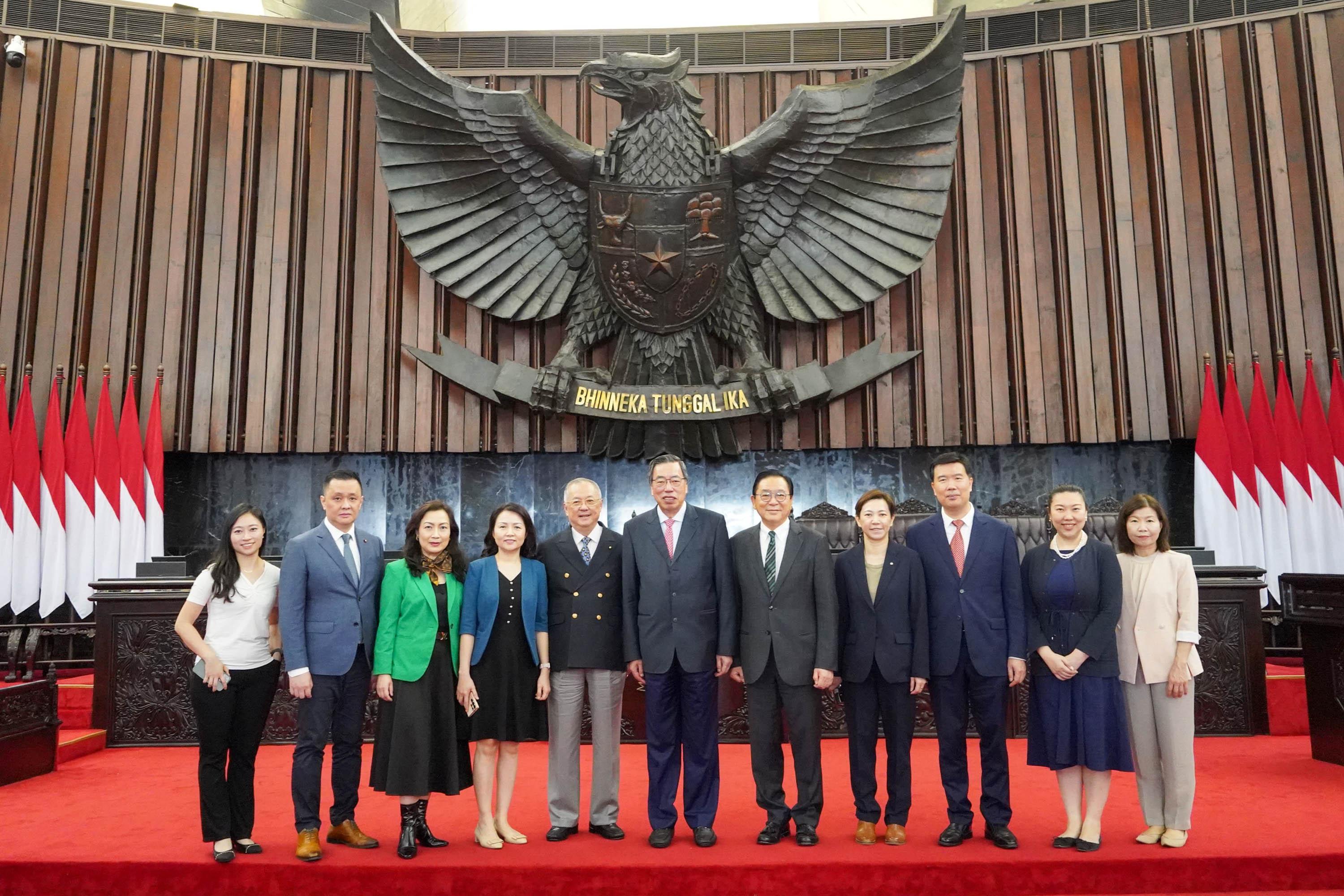 圖為立法會主席梁君彥(左五)和考察團成員與人民代表會議副議長Rachmat Gobel(左六)會面。