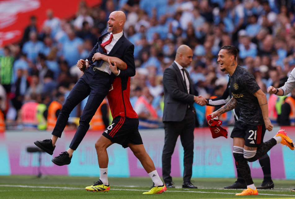 紅魔主帥坦哈格賽後興奮莫名,他表示:「我一直說,當(dāng)球員們健康時(shí),我們就可以踢出好的足球,對(duì)陣世界上最好的球隊(duì),我們有非常出色的表現(xiàn)。足球就是要捧盃,我想踢出滿有動(dòng)力的進(jìn)攻足球,但最終你必須贏得比賽和獎(jiǎng)盃,這是我們今季的一次機(jī)會(huì),我們做到了。我為職球員感到非常驕傲?!?/p>