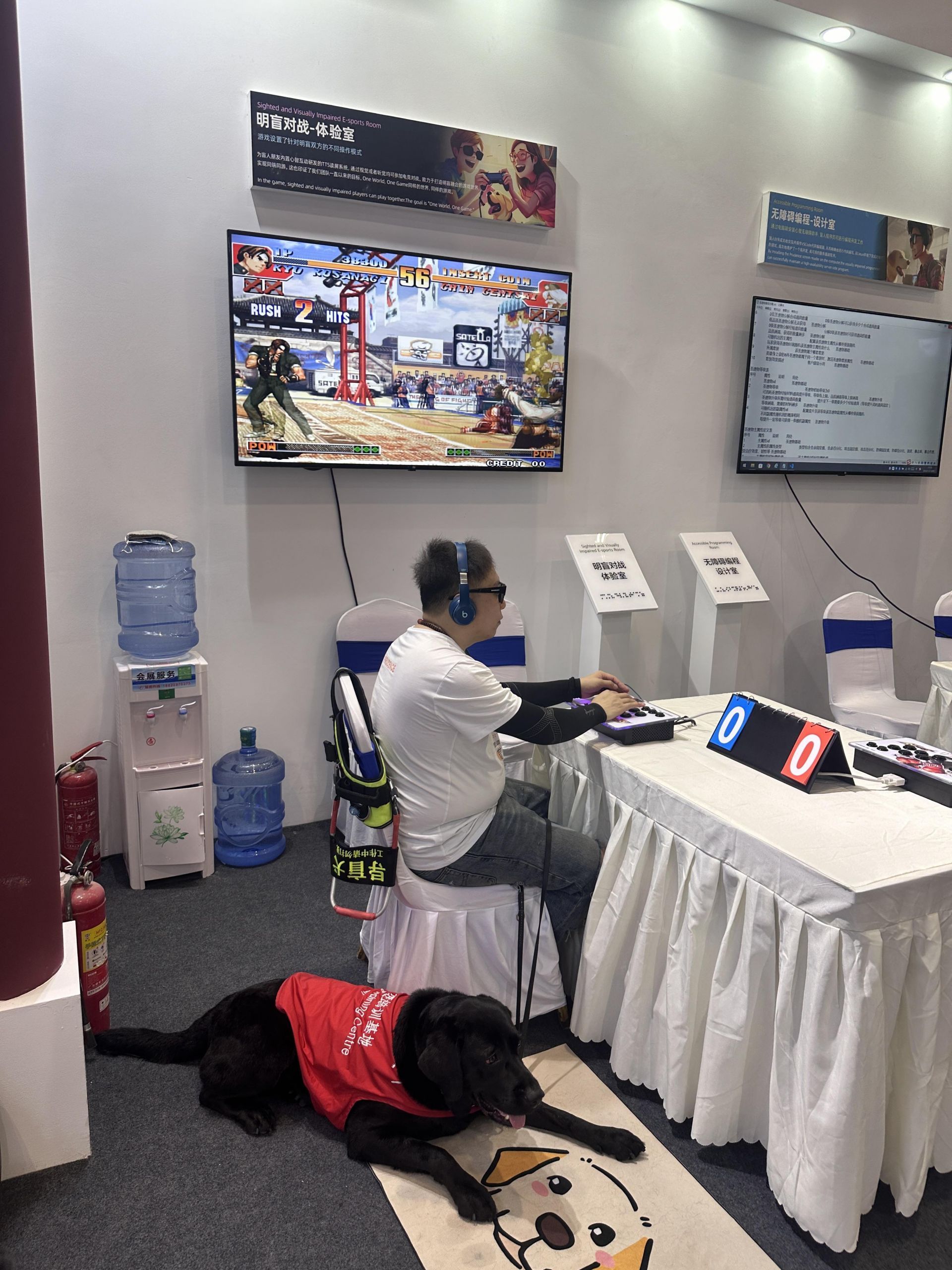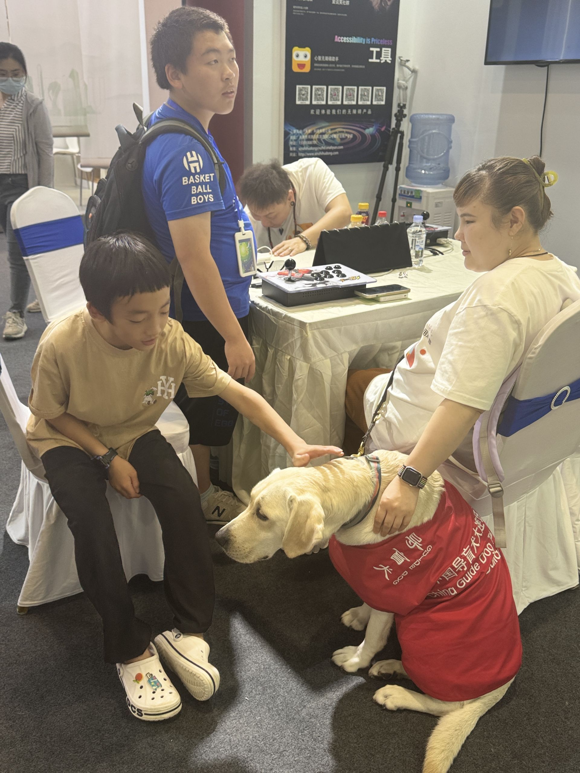 他叫白馬,是一位視障人士,來自一家為視障人群做無障礙應(yīng)用的企業(yè),也是本次文博會的參展商之一。「它是雅妮,它可以帶著我在展館裏穿梭?!拱遵R指著身邊的導(dǎo)盲犬告訴讀特新聞記者:「這是我們第一次來文博會,感覺一切都挺順利的?!?/p>