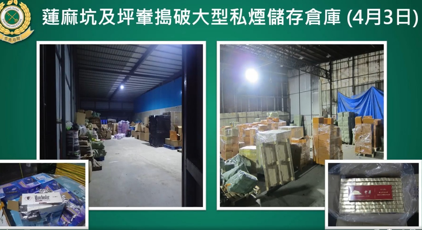 因應(yīng)私煙集團(tuán)開始以「螞蟻搬家」形式偷運(yùn)私煙,海關(guān)展開針對性行動,在本年4月於市區(qū)共搗破47個不同規(guī)模的私煙倉庫,當(dāng)中有21個是儲存超過50萬支私煙的大型倉庫,檢獲約8500萬支私煙,與2023年同期比較的7個倉庫和1800萬支私煙,分別上升2倍和3.7倍。