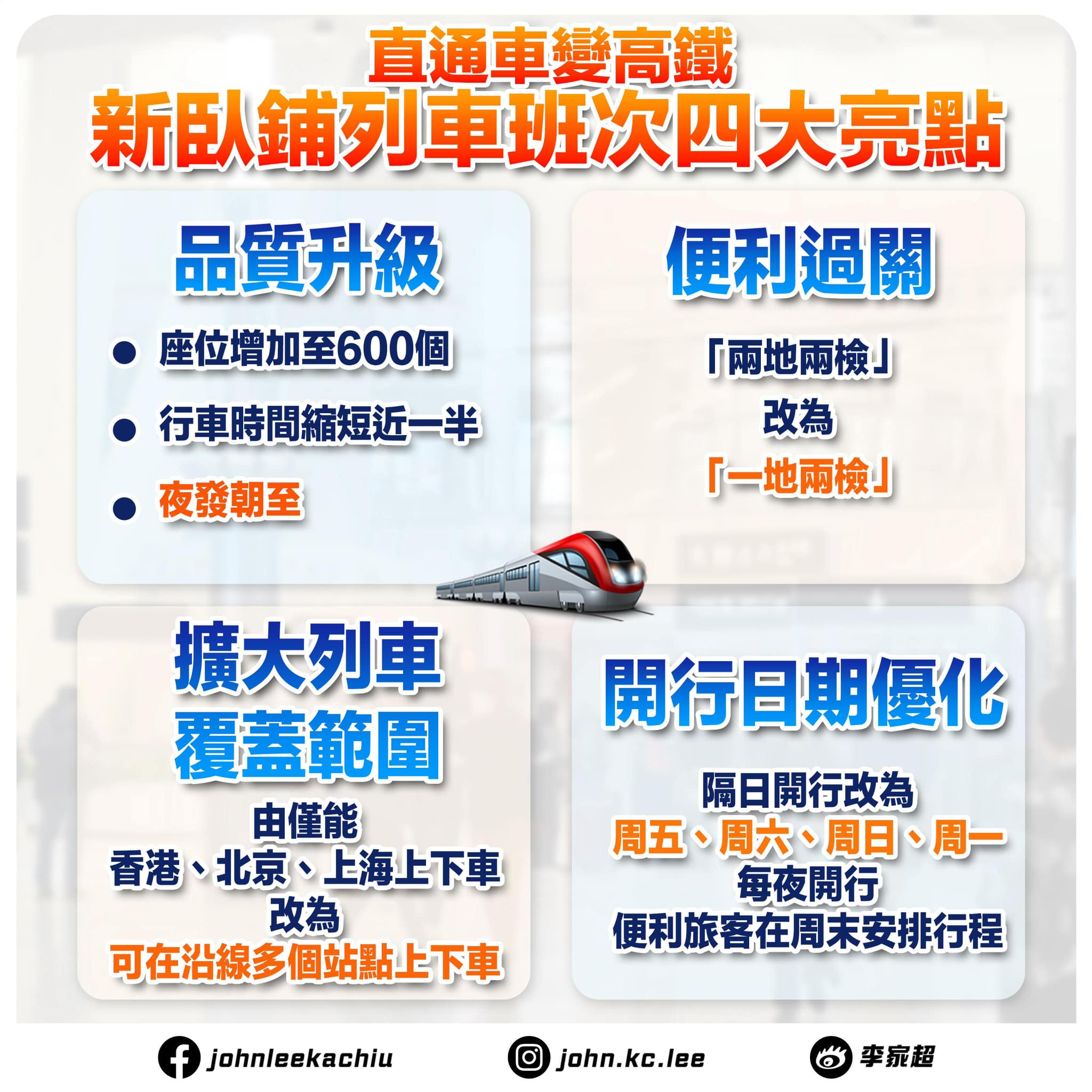 李家超:6·15起香港來往京滬普速直通車改用高鐵動(dòng)臥列車 出行時(shí)間減半