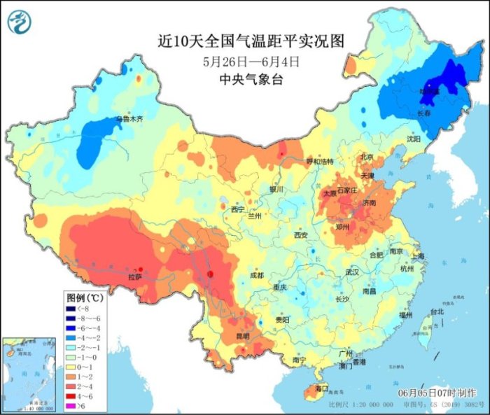 預(yù)計5-7日,內(nèi)蒙古、西北地區(qū)中東部、華北北部、東北地區(qū)有小雨或陣雨,內(nèi)蒙古中東部、東北地區(qū)等地的部分地區(qū)有中到大雨,局地暴雨,並伴有雷暴大風(fēng)等強(qiáng)對流天氣。