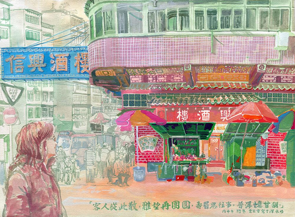 香港藝術(shù)家慧惠的作品《信興酒樓》。