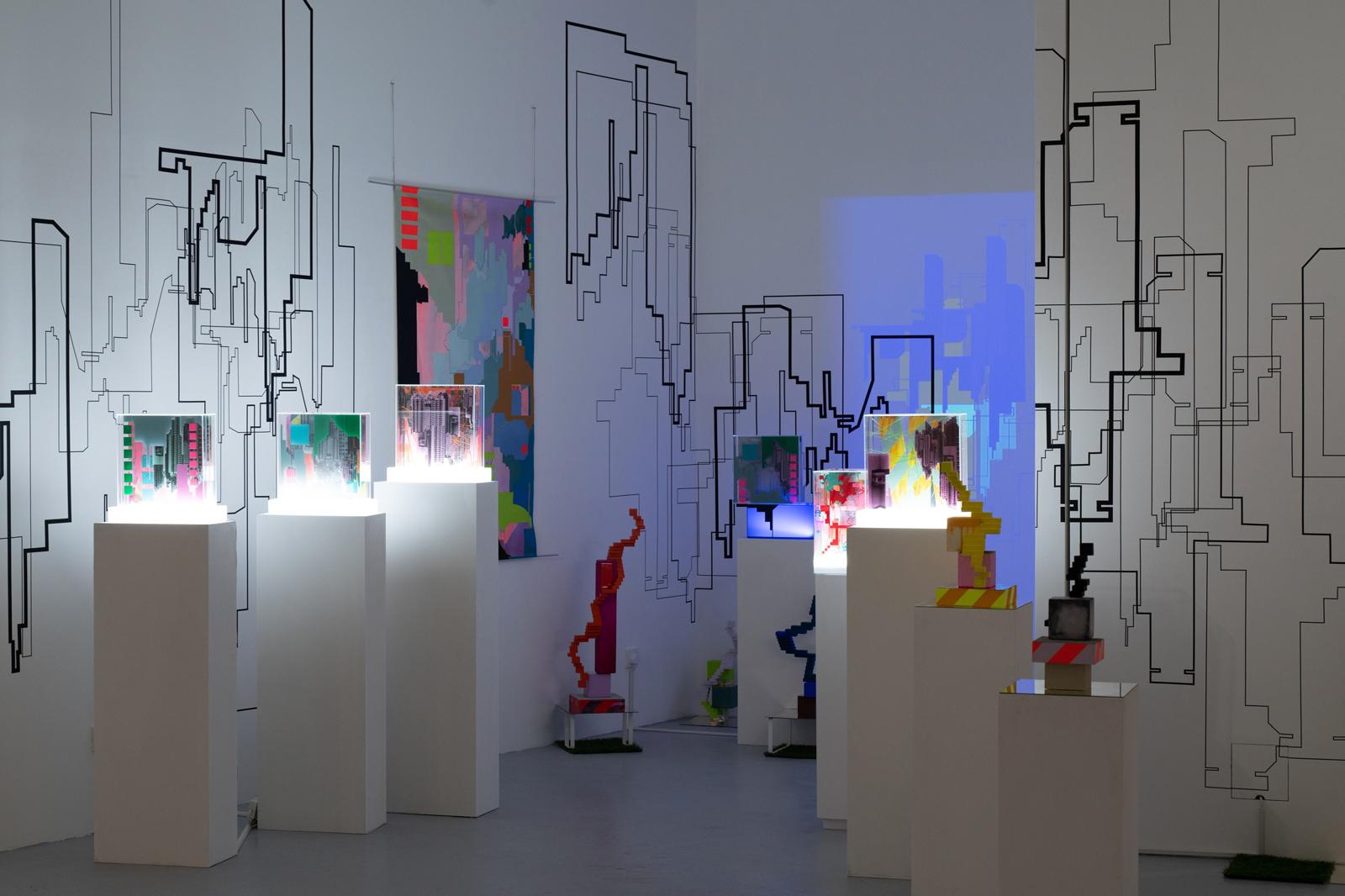 「城事」主題部分以城市敘事為主題,通過不同媒介捕捉香港的城市景觀,並把藝術(shù)作品中的符號和故事等表達(dá)作為藝術(shù)家回應(yīng)香港當(dāng)前和未來狀態(tài)的寓言。澳洲藝術(shù)家Merryn Trevethan的藝術(shù)裝置作品《Frequently Lost》以螢光色的高層建築亞克力雕塑展示了城市的多面性,而二人組合藝術(shù)家左沁悅和鄭樂怡的錄像作品《B?n \o-o/ c|e》則邀請觀眾以第一人稱視角體驗(yàn)當(dāng)代城市的景象?!肝幕蝗趯?shí)驗(yàn)室(C-Lab)」則透過展出與文化交融相關(guān)的藝術(shù)作品,從藝術(shù)家的實(shí)踐背後探討香港的文化混雜現(xiàn)象。