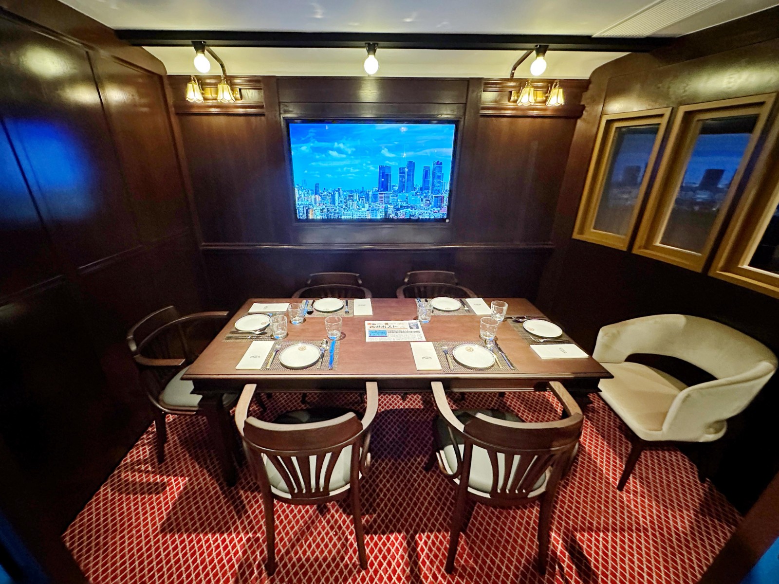 咖啡店以具代表性的古董電氣化火車「阪神電気鉄道311形」及「箱根登山鉄道チキ1形」為設(shè)計靈感,在餐廳內(nèi)復(fù)刻實景車廂、經(jīng)典車站及駕駛員控制室多個大型場景,特別的是車廂會發(fā)出真實的列車「行駛聲」,同時播放各地的風(fēng)景紀錄片。乘客座席設(shè)有寬敞的用餐空間,柔軟舒適的座椅、觸感厚實的地氈、同一楓木色調(diào)及木製桌子,如同走進車卡,一邊享用美食、一邊遠眺「窗外美景」,十分愜意。餐廳設(shè)有3節(jié)的和式包廂,以屏風(fēng)作間隔,營造恍如半包廂的隱私空間,木製的玻璃幕門增添復(fù)古氛圍。