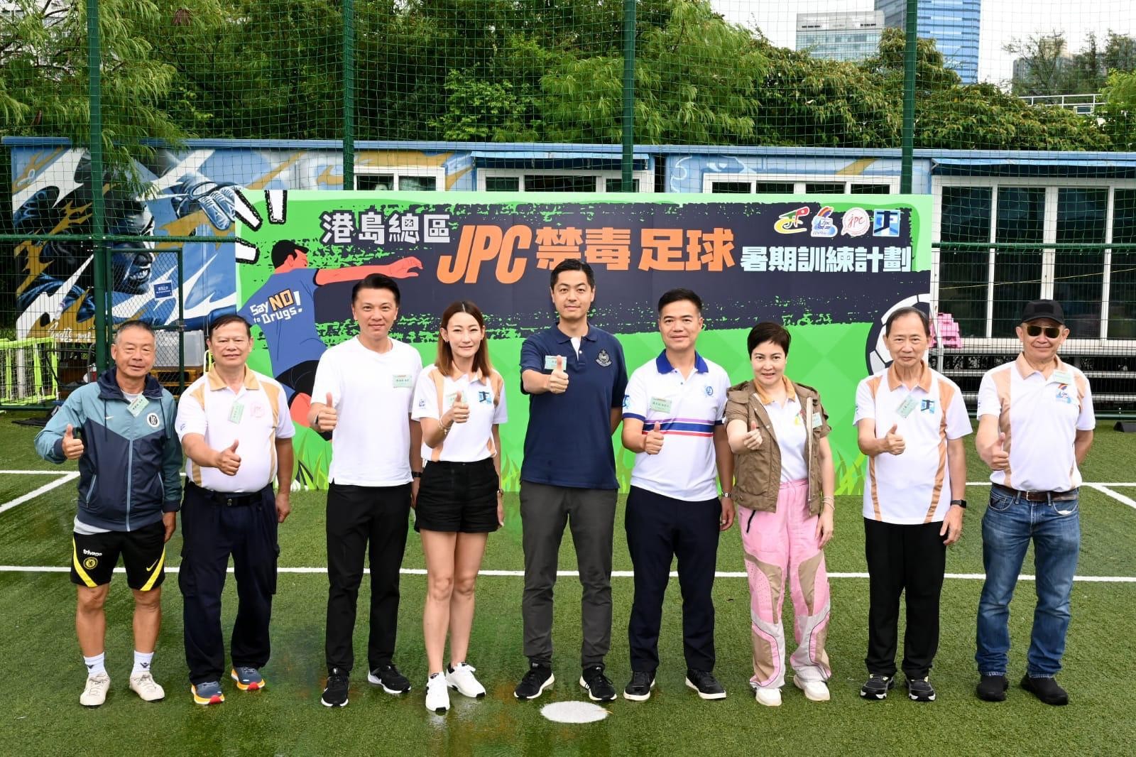 警務(wù)處東區(qū)警區(qū)今日(16日)在藍(lán)田茜草灣車路士足球訓(xùn)練學(xué)校(香港)舉辦「港島總區(qū)少年警訊,禁毒足球暑期訓(xùn)練計劃」開球禮。來自西區(qū)、中區(qū)、灣仔區(qū)及東區(qū)的少年警訊足球隊將展開為期兩個月的訓(xùn)練計劃。