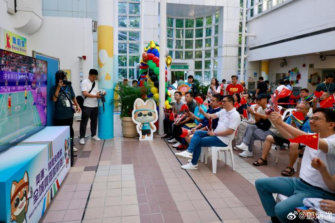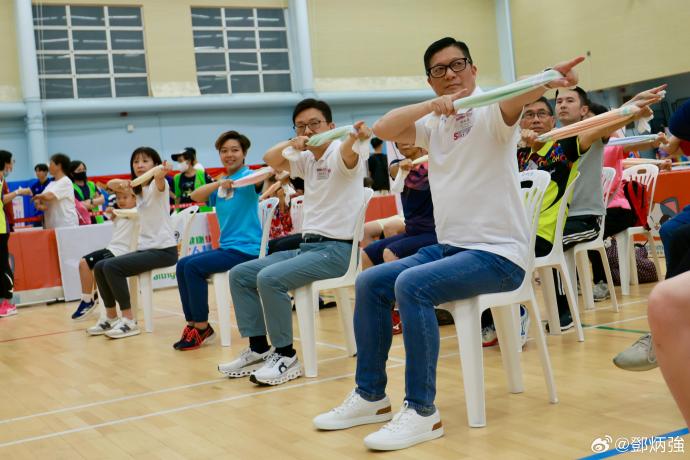 鄧炳強(qiáng)表示,大家最近看奧運(yùn)也看到技癢,趁著這個時候就建立運(yùn)動習(xí)慣,一起做運(yùn)動健體。適逢現(xiàn)場直播奧運(yùn)羽毛球女單四強(qiáng)賽,由國家隊(duì)對戰(zhàn)西班牙,我們當(dāng)然要全力支持國家隊(duì)的何冰嬌,全場為她吶喊歡呼!